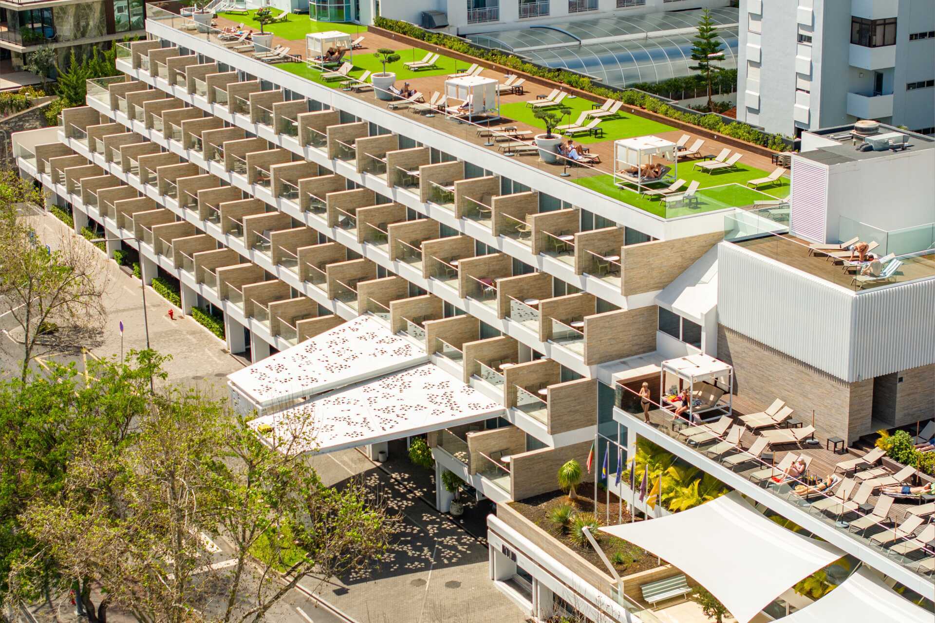 De gav os en studio lejlighed i kælder niveau ud for poolen, hvor der var helt mørkt. Jeg klagede og sagde at vi havde bestilt med skrå havudsigt og så fik vi et andet værelse dog