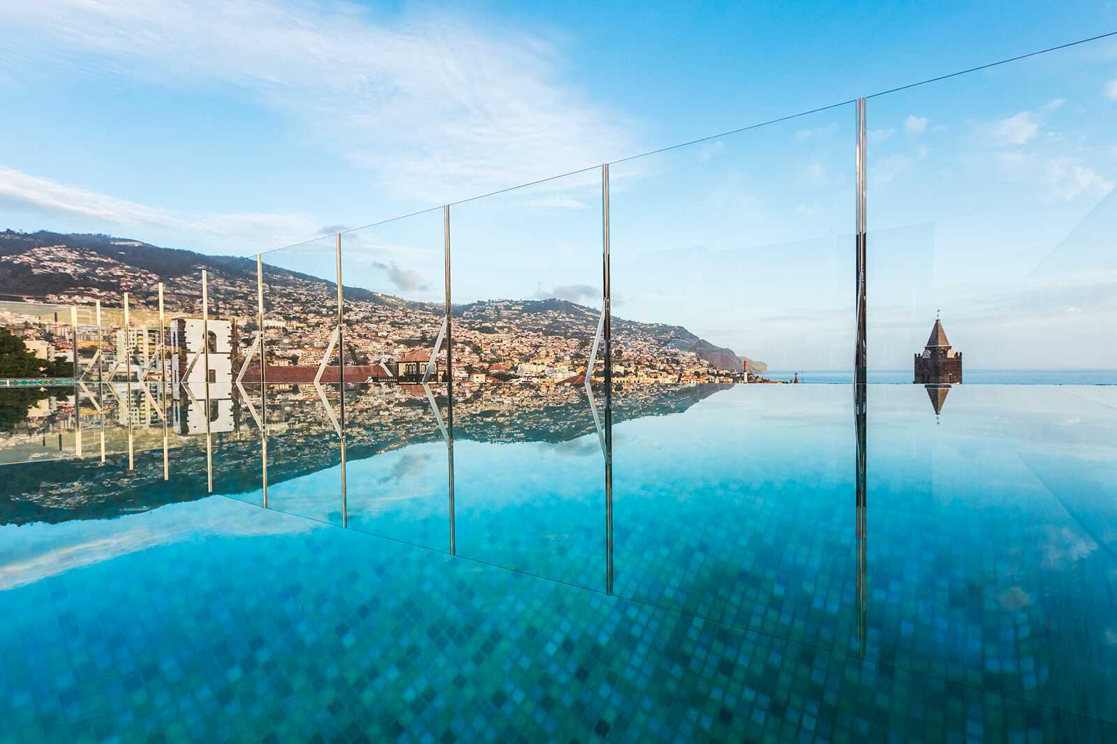 Opvarmet udendørs pool med smuk udsigt over Funchals hustage og havet. Poolen er opvarmet året rundt til ca. 22 grader. Pooltemperaturen kan dog falde et par grader om morgenen, aftenen og i dårligt vejr. Solstole, parasoller, jacuzzi og poolhåndklæder er inkluderet. Poolbar der serverer lette måltider i løbet af dagen.