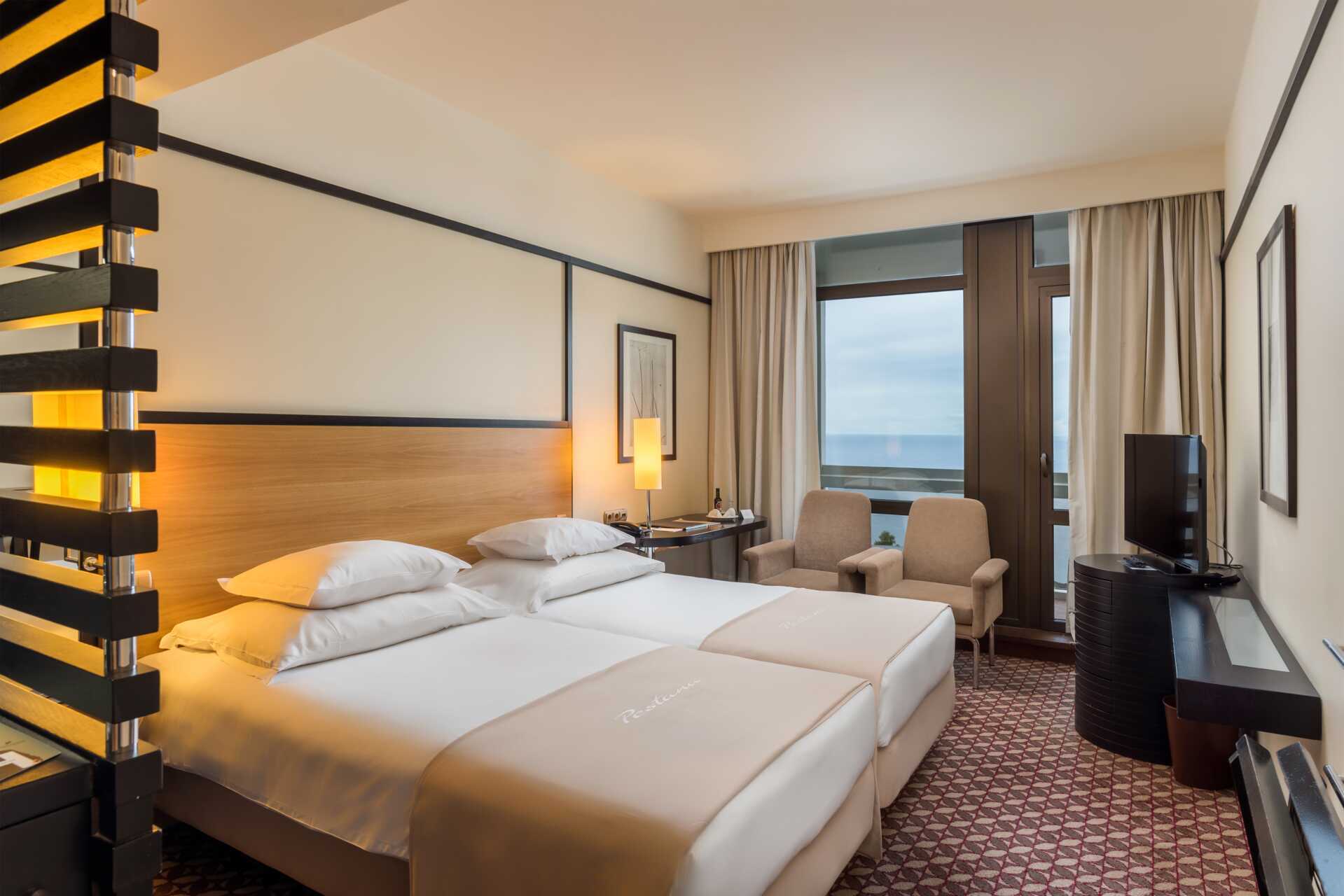 Dobbeltværelser med balkon, nogle med delvis havudsigt og nogle med udsigt (mod haven). En dobbeltseng eller to enkeltsenge. Mulighed for opredning i enkeltseng eller i fold ud-seng. Børn til og med 3 år sover i barnesenge. Gratis wifi, aircondition og deponering. Væg til væg-tæppe. Minibar. Tv med internationale kanaler. Hårtørrer. Badeværelse med badekar eller bruser samt toilet. Rengøring 7 gange om ugen.