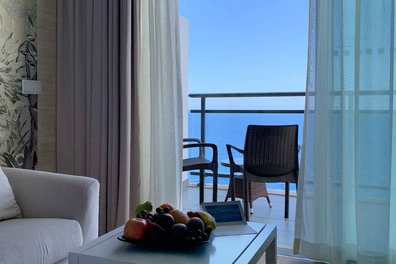 Junior-suite Premium med balkon og havudsigt. Værelserne er placeret på etage 1-3. En dobbeltseng eller to enkeltsenge. Gratis wifi, aircondition og deponering. Køleskab. El-kedel og kaffe/te. Tv med internationale kanaler. Badekåber og tøfler. Hårtørrer. Badeværelse med bruser og toilet. Rengøring 7 gange om ugen. Børn under to år tæller med i det maksimale antal personer på værelset. Rygning er ikke tilladt på balkonen.