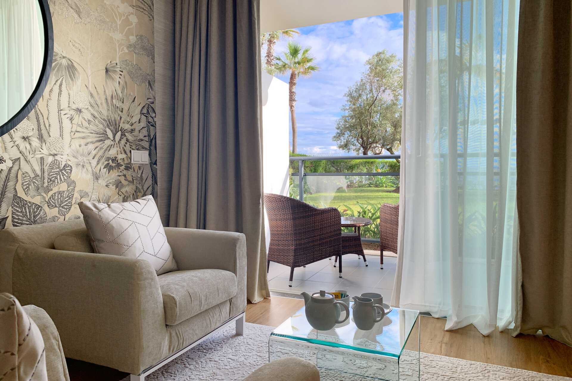 Junior-suiter med balkon. Værelserne ligger i etage 1-3 ud mod haven. En dobbeltseng eller to enkeltsenge. Gratis wifi (forbindelse varierer afhængigt af hvor værelset er placeret på hotellet), aircondition og deponering. Køleskab. El-kedel og kaffe/te. Tv med internationale kanaler. Badekåber og tøfler. Hårtørrer. Badeværelse med bruser og toilet. Rengøring 7 gange om ugen. Børn under to år tæller med i det maksimale antal personer på værelset. Rygning er ikke tilladt på udepladsen.