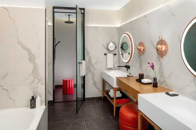 Dobbeltværelse, uden udeplads, nogle værelser med havudsigt fra vinduet. En dobbeltseng eller to enkeltsenge. Mulighed for ekstra opredning i sovesofa. Gratis wifi, aircondition og deponering. Minibar - alkoholfri drikkevarer og snacks indgår. Nespresso kaffemaskine - kapsler indgår og genopfyldes hver dag. El-kedel og kaffe/te. Tv med internationale kanaler. Strygejern og strygebræt. Badekåber og tøfler. Hårtørrer. Badeværelse med to håndvaske, badekar, separat bruser og separat toilet. Rengøring 7 gange om ugen.