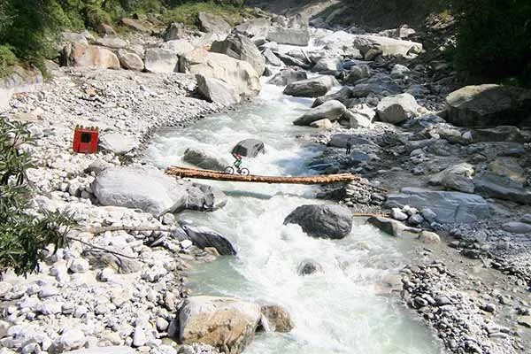 Dag 9 Khatti – Phukiya. En fantastisk dag på cykel, hvor vi følger den utroligt smukke Pindari-dal og støt klatrer ad singletrack ind i hjertet af Himalaya. Vi overnatter i vandrehytter i Phukiya, det sidste hvilested før gletsjeren. Afstand: 16 km, Cykeltid: 5 timer, Overnatning: Phukiya