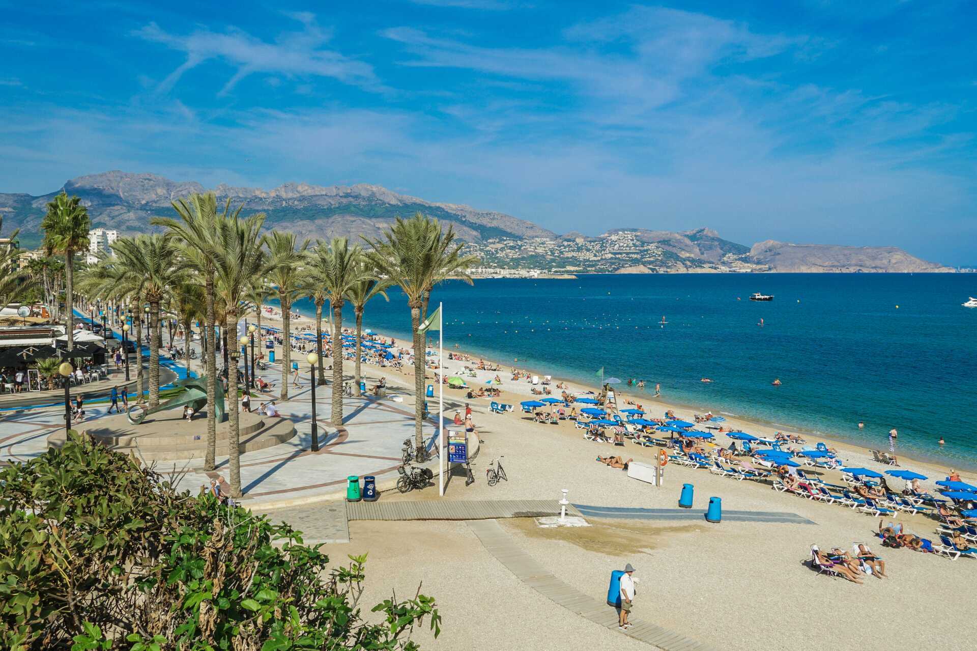 Midt i byen finder du den fine strand, Playa del Albir, som består af hvide småsten og er blevet tildelt Det Blå Flag for sit rene og fine vand. Her kan du nyde solen og svømme, prøve forskellige vandsportsaktiviteter eller hvorfor ikke spille lidt beachvolley. Trænger du til en pause fra solstolen, er der adskillige hyggelige barer og restauranter langs den palmeomkransede promenade, hvor du kan spise frokost eller bare få noget forfriskende at drikke.