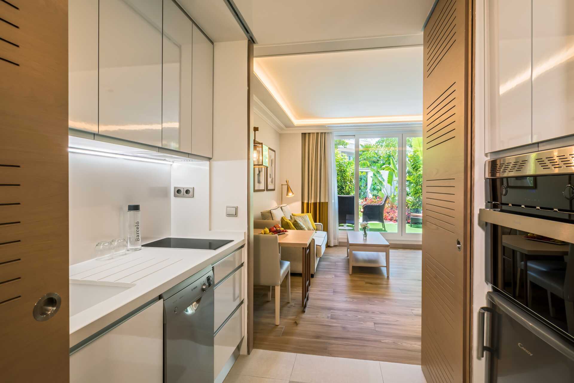 Deluxe-værelser med balkon eller terrasse. En dobbeltseng. Mulighed for ekstra opredninger i sovesofa. Der er også et separat køkken med kogeplader, køleskab, opvaskemaskine, ovn og mikroovn. Køkkenudstyr på forespørgsel. Gratis wifi og aircondition. Deponering mod betaling. Tv med internationale kanaler. Hårtørrer. Badeværelse med bruser og toilet. Rengøring 5 gange om ugen.