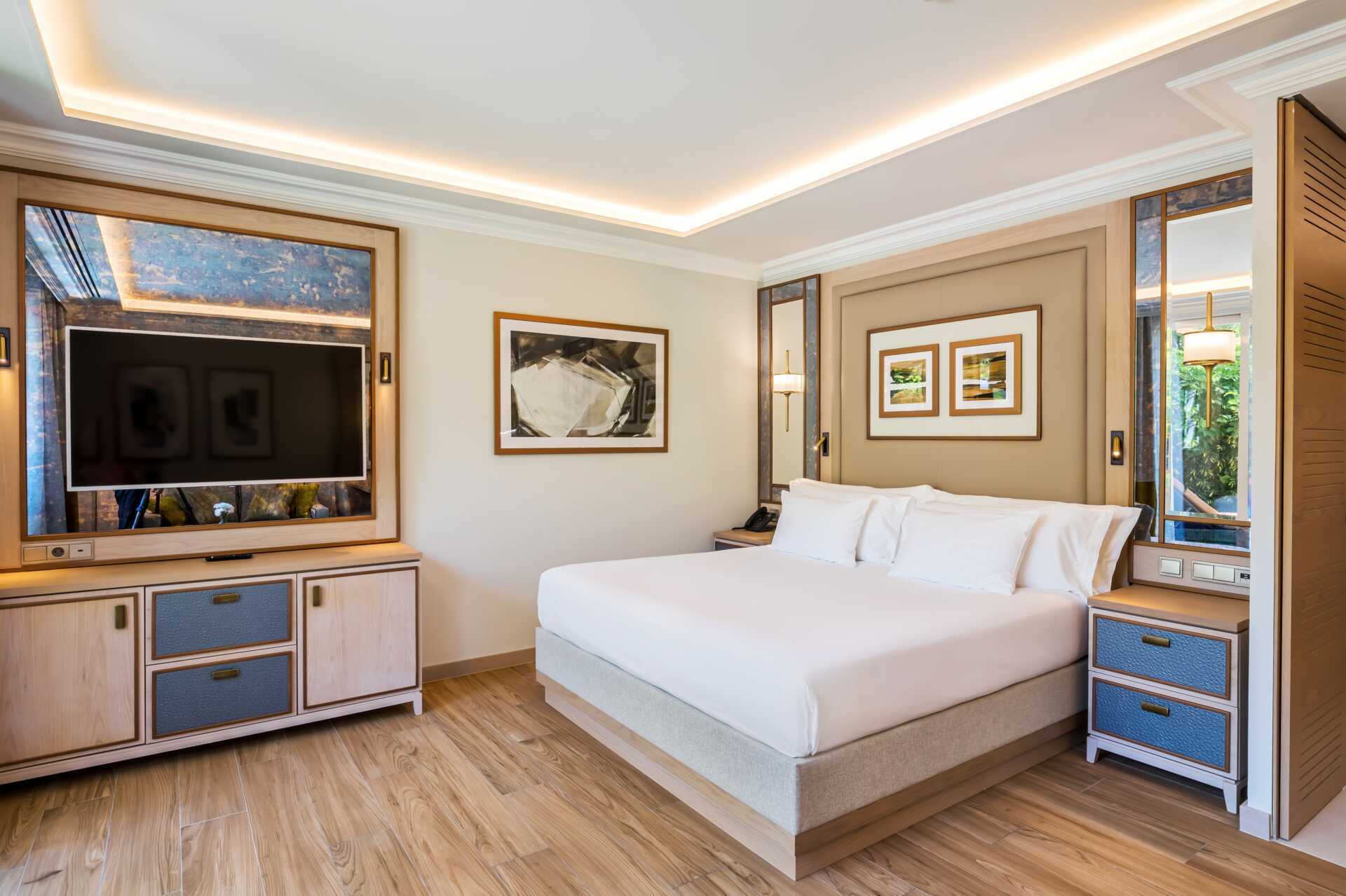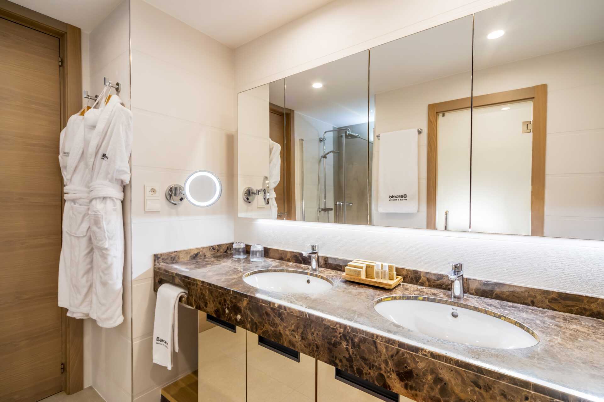 Junior-suite med balkon eller terrasse. Junior-suiten består af et soveværelse og et opholdsrum, der kan adskilles med en skydedør. To enkeltsenge. Mulighed for ekstra opredninger i sovesofa. Gratis wifi og aircondition. Deponering mod betaling. Minibar. Tv med internationale kanaler. Hårtørrer. Badeværelse med bruser og toilet. Rengøring 5 gange om ugen.