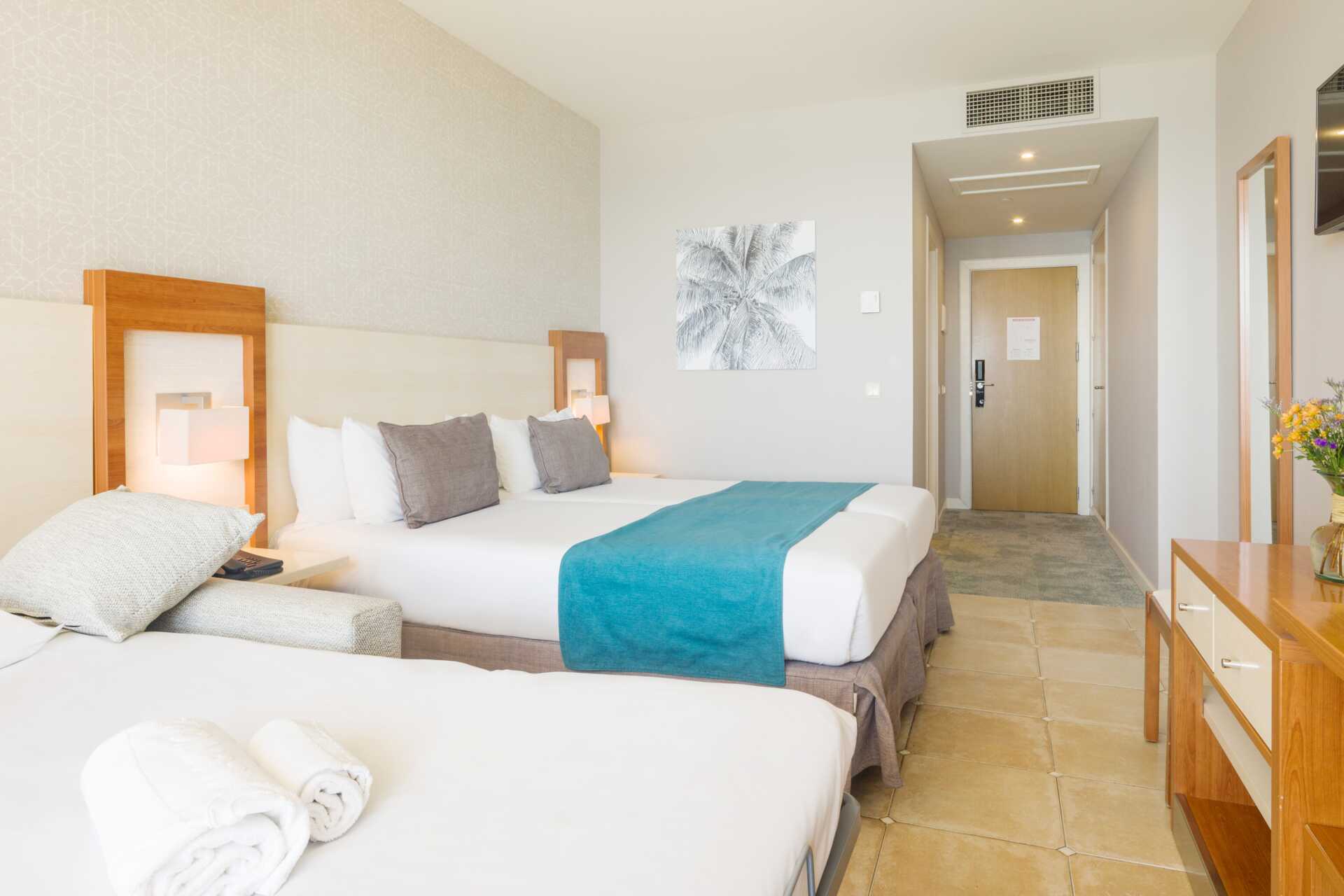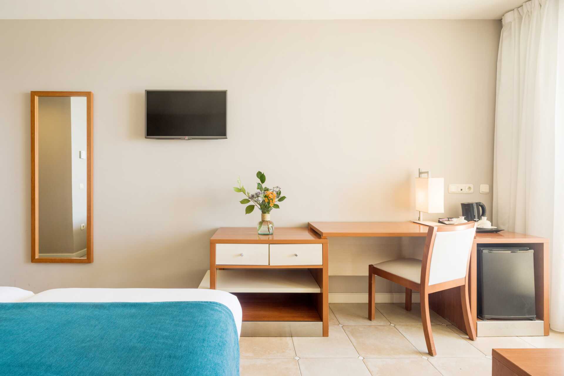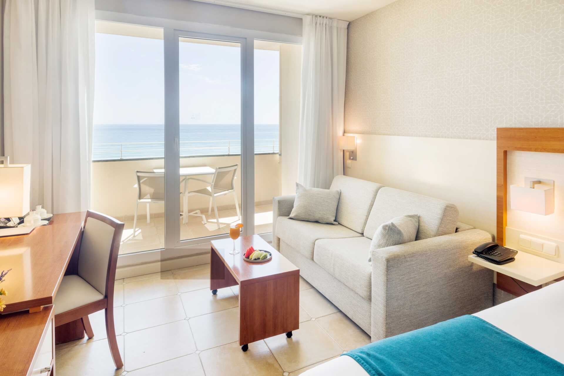 Dobbeltværelser med balkon, nogle med havudsigt eller og nogle med delvis havudsigt. En dobbeltseng eller to enkeltsenge. Mulighed for ekstra opredninger i sovesofa. Gratis wifi, aircondition og deponering. Køleskab. El-kedel og kaffe/te. Tv med internationale kanaler. Hårtørrer. Badeværelse med badekar og toilet. Rengøring 7 gange om ugen.