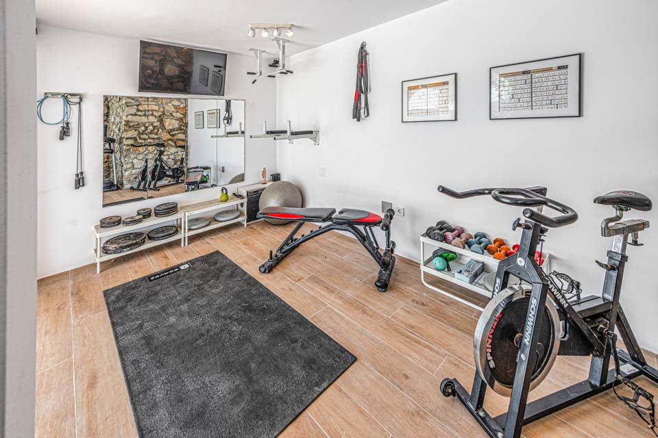 Villa Las Viustas Sierrezuela tilbyder et veludstyret fitnesscenter med liftudstyr for fitnessentusiaster og tusindvis af onlinehold. Opholdsstuen åbner op til en charmerende terrasse med hjørnesofa, udendørs spiseplads og et bistrobord, der skaber de perfekte rammer til at nyde din morgenkaffe, mens du beundrer solopgangen.