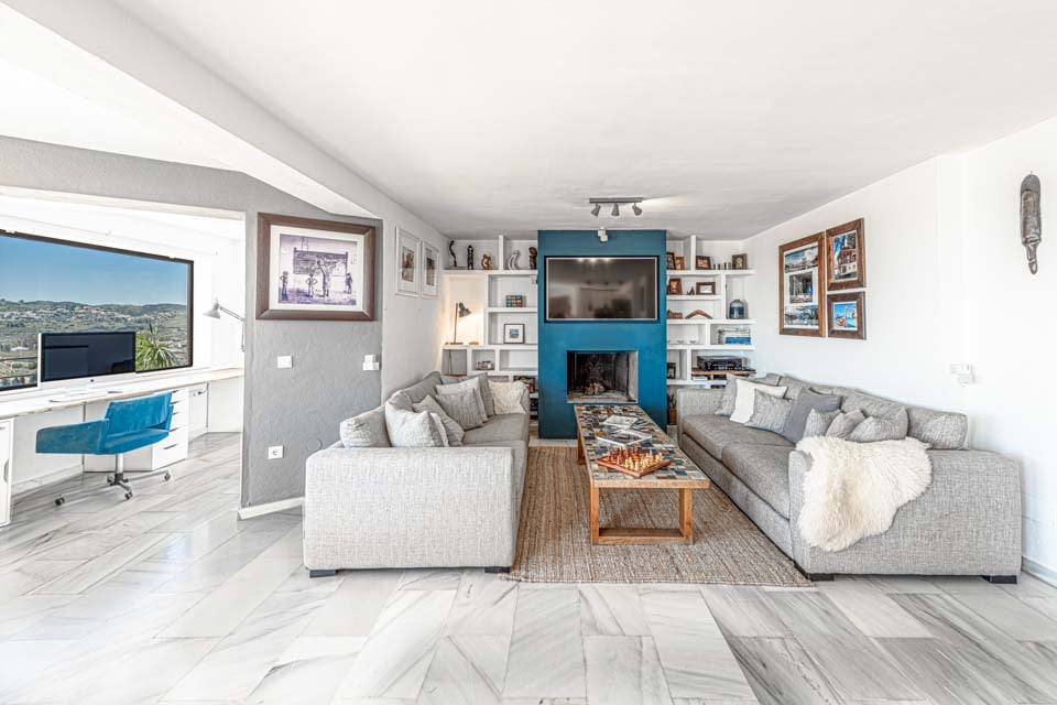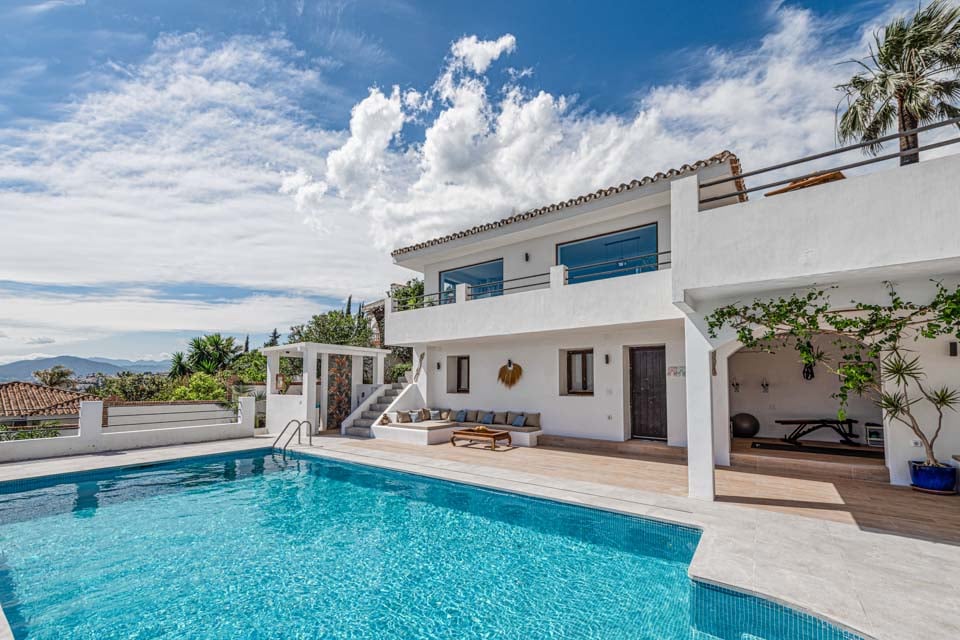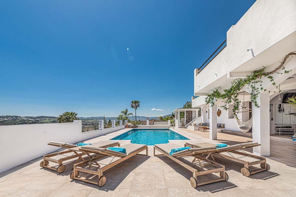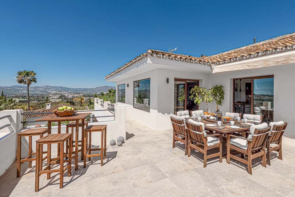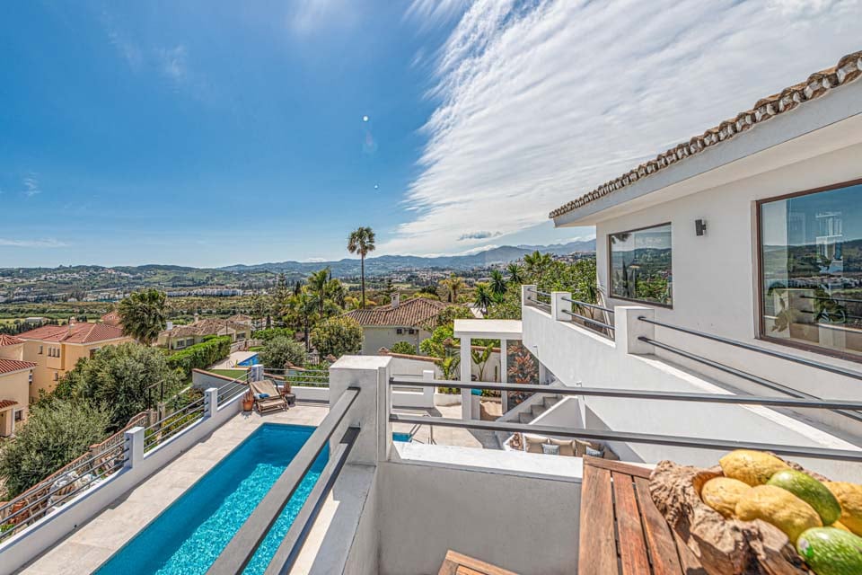 Denne moderne villa har fire soveværelser, en rummelig åben opholdsstue, flere terrasser, et udendørs køkken, en dejlig swimmingpool og et fitnesscenter. Beliggende i den prestigefyldte urbanisering La Sierrezuela, mellem den charmerende landsby Mijas og den pulserende by Fuengirola, er denne villa perfekt til familier eller vennegrupper.