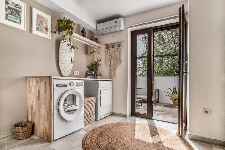 Vaskemaskine, tørretumbler, tørretumbler, døre til terrasse