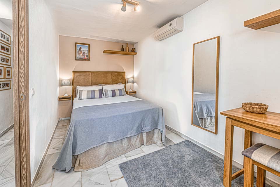 Dobbeltseng, dobbeltseng, aircondition, døre til terrasse