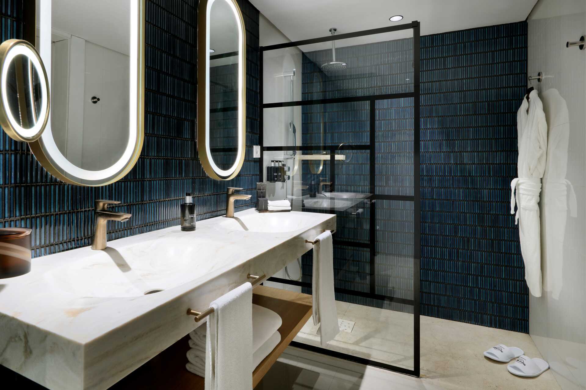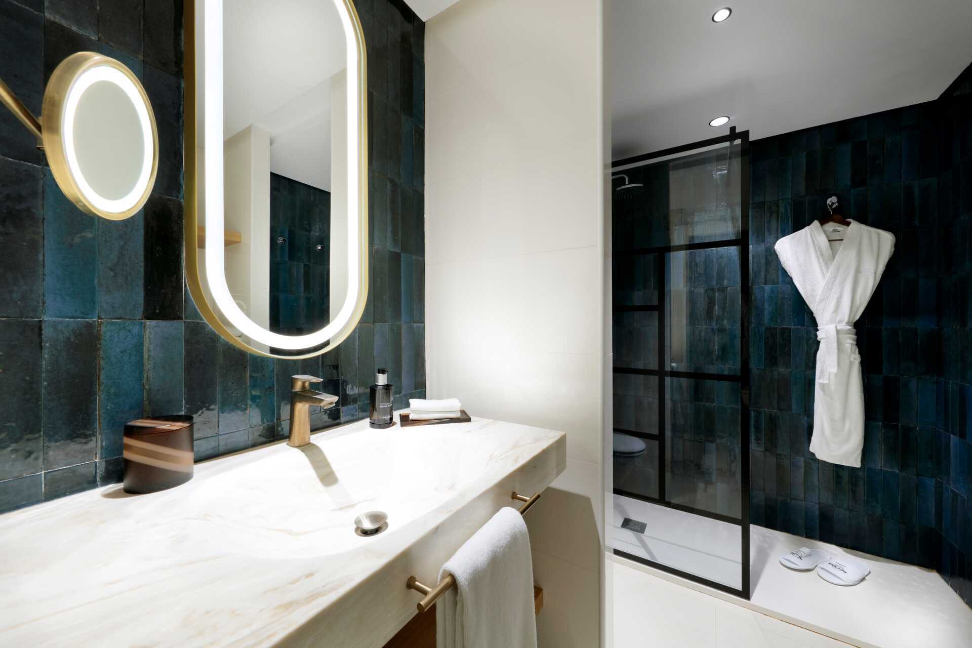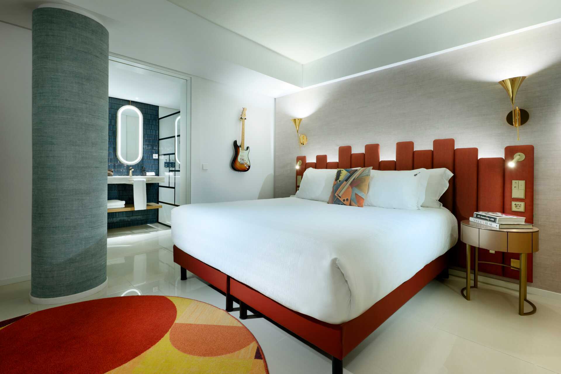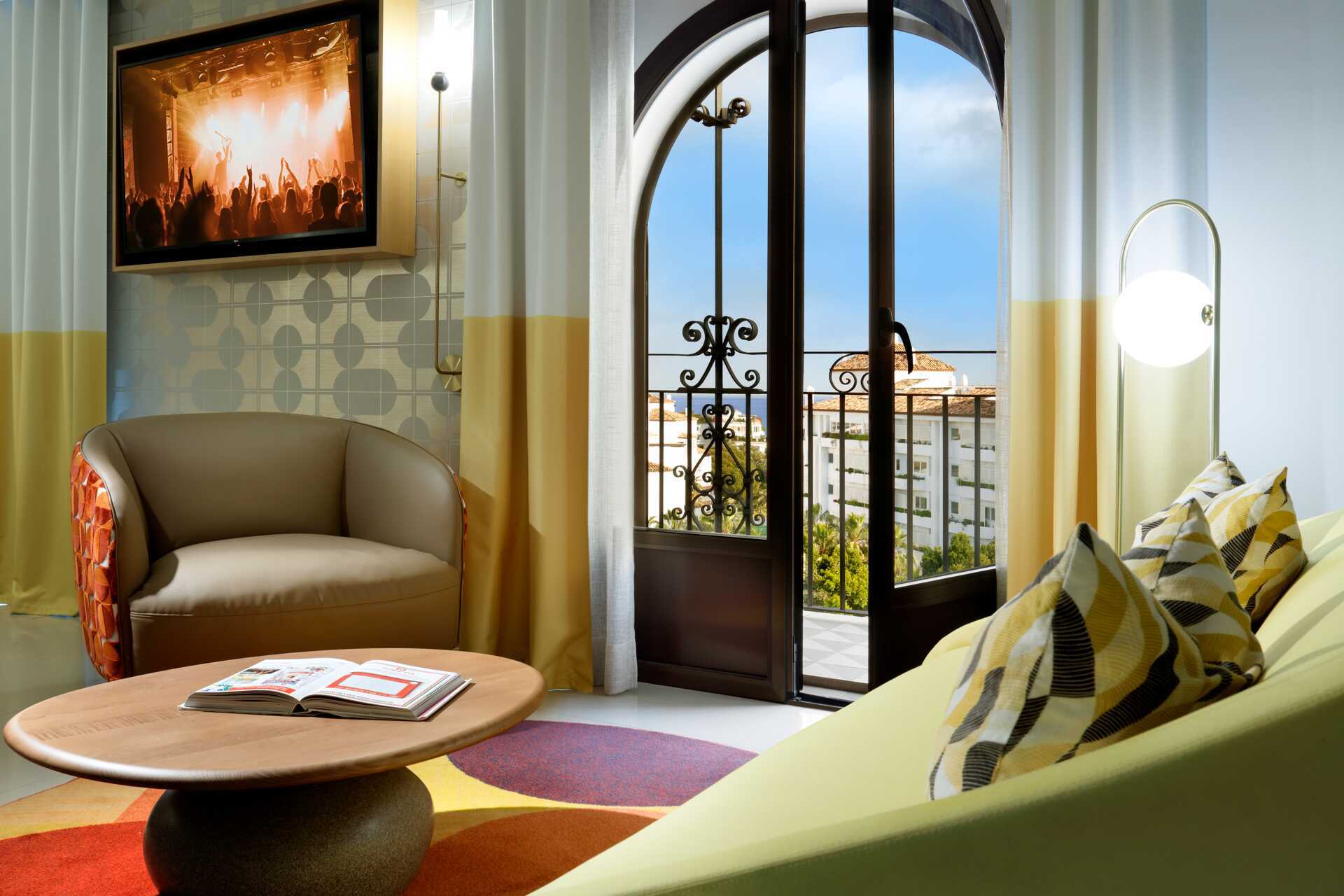 Suiterne med balkon. Suiten består af et soveværelse og et opholdsrum med fold ud-stole og en sofa. En dobbeltseng eller to enkeltsenge. Mulighed for en ekstra opredning i sovesofaen. Sleep-Like-A-Rock® sengetøj. Gratis wifi, aircondition og deponering. Minibar. El-kedel og kaffe og te. Nespresso kaffemaskine. Tv med internationale kanaler. Badekåber og tøfler. Hårtørrer. Rock Spa® badeværelsesprodukter. Åben planløsning til håndvask, separat bruser med glasdøre og separat toilet. Rengøring 7 gange om ugen.