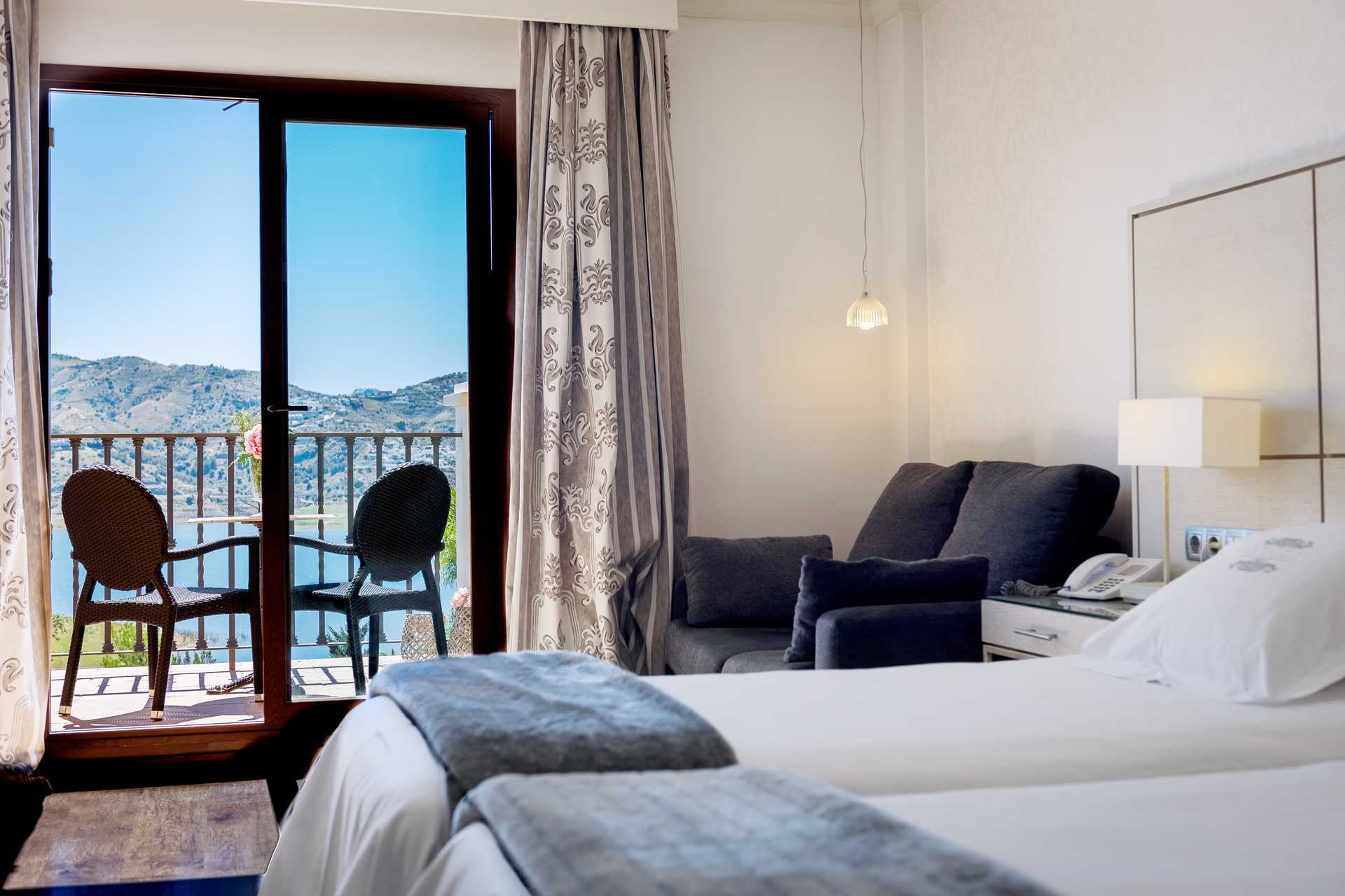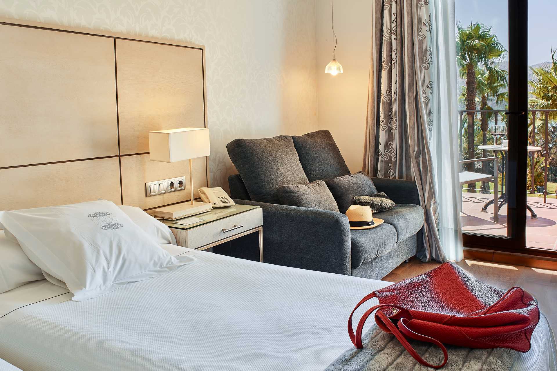 Dobbeltværelse med stor balkon eller terrasse. En dobbeltseng eller to enkeltsenge. Mulighed for ekstra opredning i sovesofa. Gratis wifi, aircondition og deponering. Køleskab. Tv med internationale kanaler. Hårtørrer. Badeværelse med badekar eller bruser samt toilet. Rengøring 7 gange om ugen.