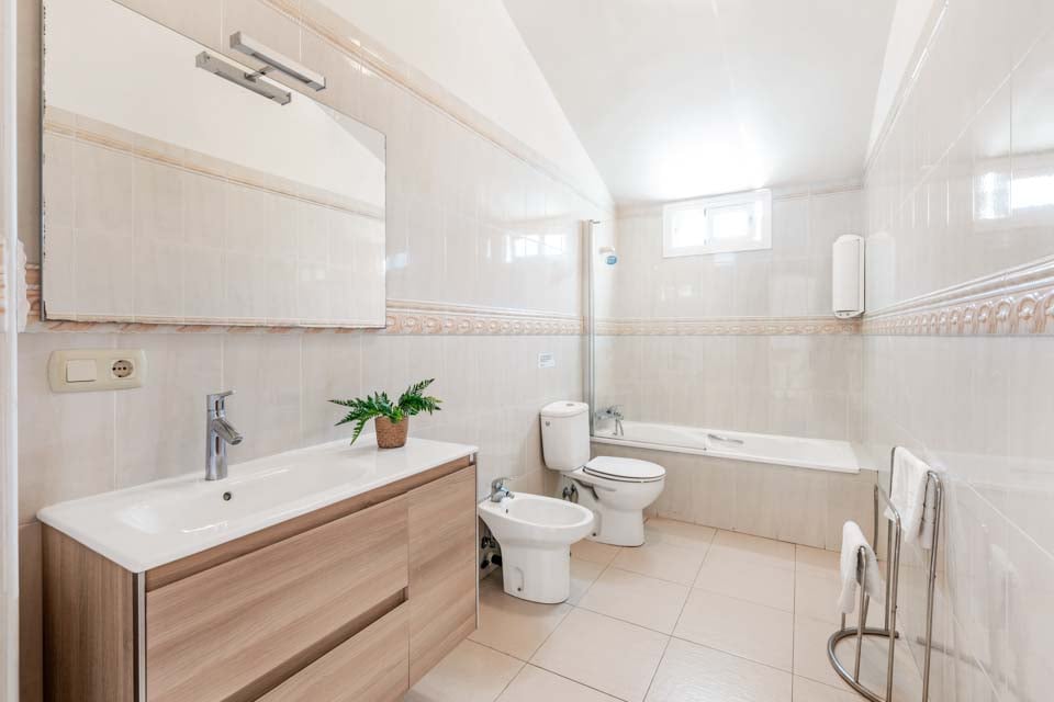 Denne villa ligger i et usædvanligt bakket/bjergrigt område, og på trods af at villabygningen ligger i et ujævnt terræn uden vigtige trin rundt, er villaens beliggenhed på toppen af en bakke, og køreturen til villaen er kompliceret. Grunden uden for huset er stejl (den ligger på en bakke). For at komme til villaen er der en sti, der er 180 cm bred, samt 1 trin op til selve villaen. Hoveddøren har en bredde på 82 cm. Haveområdet er omgivet af 2 forskellige trapper, fra den overdækkede terrasse til poolområdet (20 cm) og fra poolen til haven (13 cm). Poolen har romerske trin for at komme ind. Den bredeste soveværelsesdør i stueetagen er 80 cm bred, hvilket er dobbeltværelset, og den bredeste badeværelsesdør i stueetagen er 80 cm bred. Døren ind til køkken/alrum er 74 cm bred, og døren ind til opholdsstuen er 74 cm bred. *Bemærk venligst, at selvom vi har gjort alt for at sikre, at de givne oplysninger er nøjagtige, kan der forekomme fejl, og hvis du har brug for mere specifik information om villaen, er du velkommen til at kontakte os.