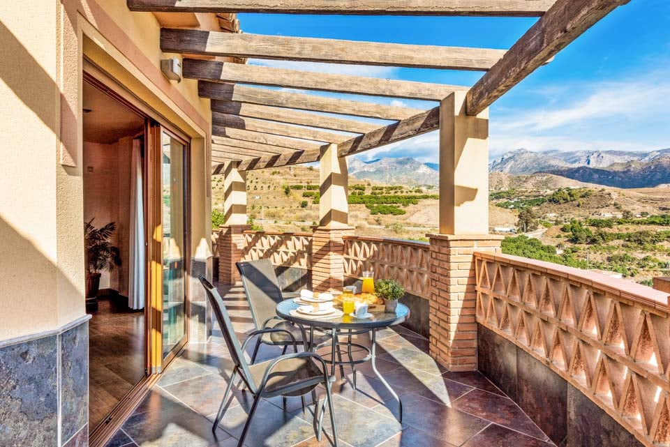 Når vi forestiller os en afslappende andalusisk ferie, kommer den fantastiske Villa Ana Bella straks til at tænke på. Beliggende i de tætte bakker i Rio Seco-området i udkanten af Nerja, vil udsigten over det varierede landskab tage pusten fra dig. Du får et to-dobbelt kig på Villa Ana Bella, der er designet til at fremvise den smukke natur ved at være bygget ind i bjergsiden. Stir ud over tårnhøje bjerge, frodige vinmarker, livlige mango- og avocadolunde og stablede hvidmalede landsbyer – alt sammen med det glitrende Middelhav i horisonten. Kun en kort køretur væk ligger den hvidkalkede by Nerja, omkranset af gyldne sandstrande og klippefyldte bugter. Gå en tur ned ad de populære brostensbelagte gader for at finde traditionelle tapasbarer, internationale restauranter og et afslappet natteliv. For at få et indblik i kulturen er den smukke landsby Frigiliana i sig selv billedværdig med sine hyggelige hvidmalede huse stablet op på de stejle, skrånende gader. Der er endda noget for eventyrlystne – tag en tur op ad bakken, der tårner sig op over byen, for at få en utrolig udsigt over de historiske gader og det uendelige bjerglandskab.