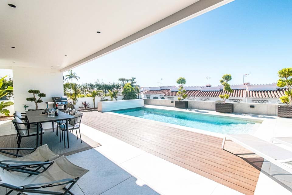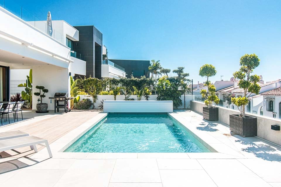 Beliggende i den charmerende kystby Nerja tilbyder denne moderne 3-etagers villa den ideelle blanding af komfort, stil og bekvemmelighed. Villaen, som er en del af vores luksusserie, ligger kun en kort gåtur fra resortet, butikker, strand og et bredt udvalg af restauranter, hvilket gør den til den ideelle base for din ferie – ingen bil nødvendig.