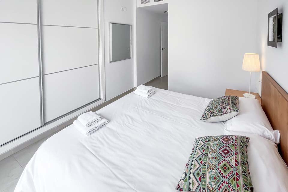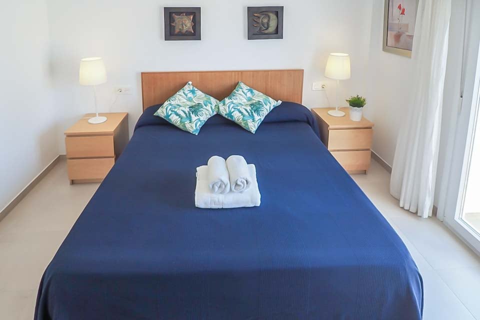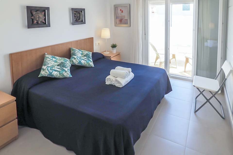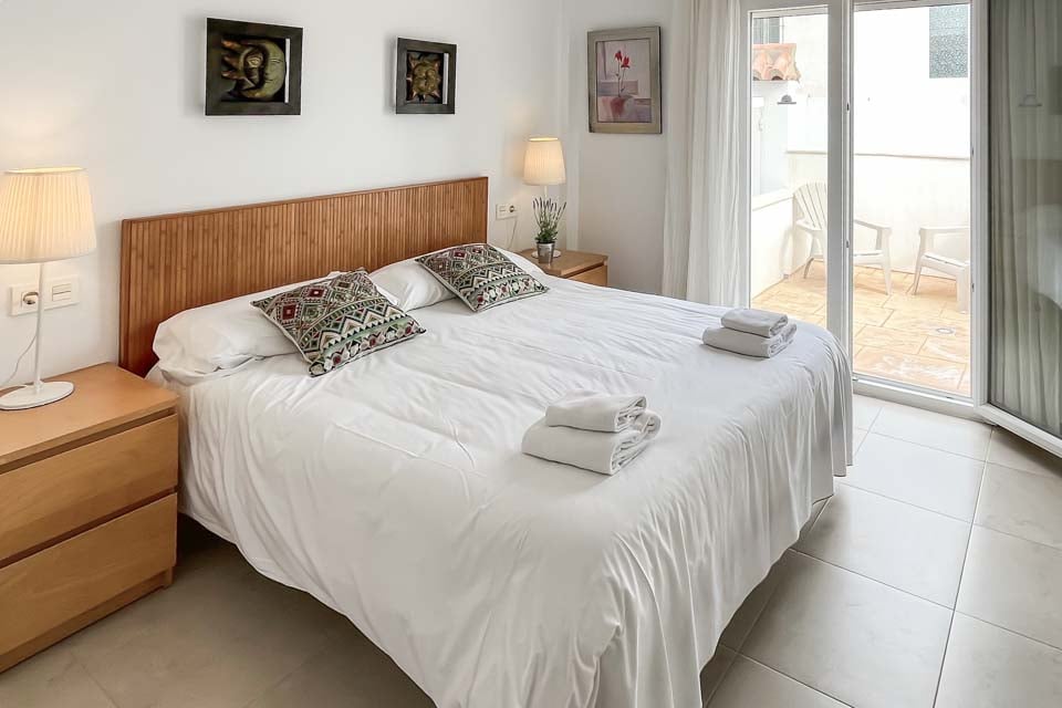 Kingsize-seng, aircondition, døre til terrasse