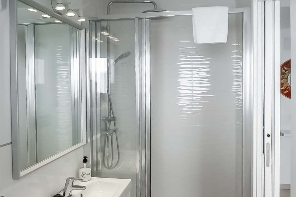 Enkeltsenge, aircondition, døre til terrasse
