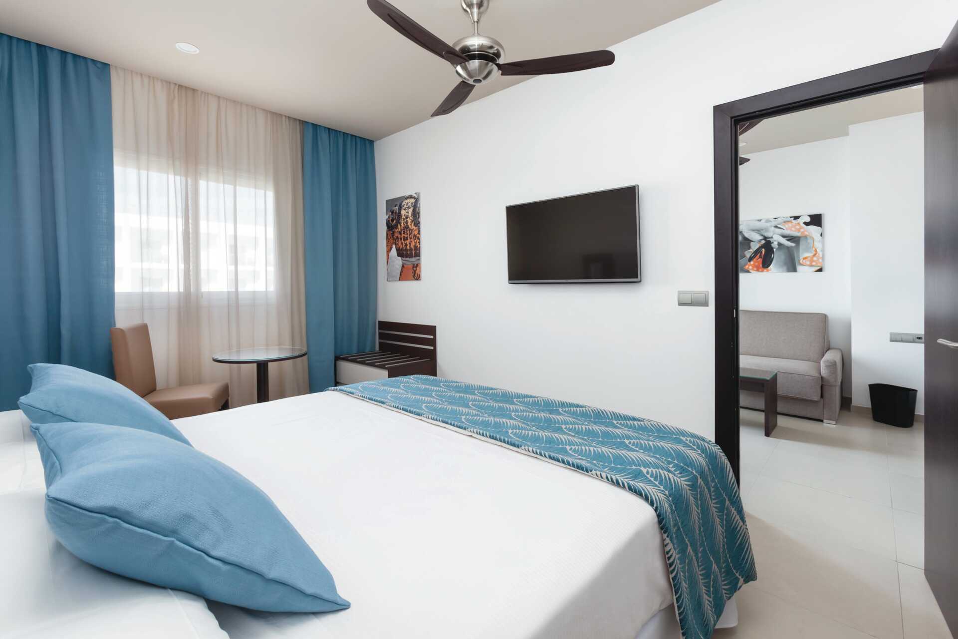 Junior-suite med balkon eller terrasse. En dobbeltseng eller to enkeltsenge. Mulighed for ekstra opredninger i sovesofa. Gratis wifi, aircondition og deponering. Loftsvifte. Køleskab. El-kedel. Tv med internationale kanaler. Hårtørrer. Badeværelse med to håndvaske, bruser og separat toilet.