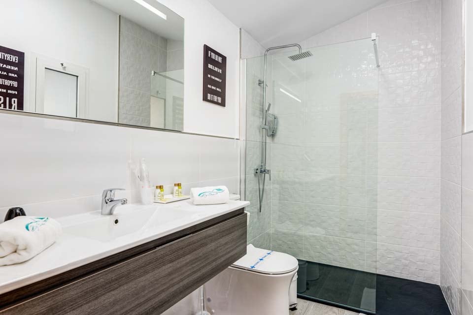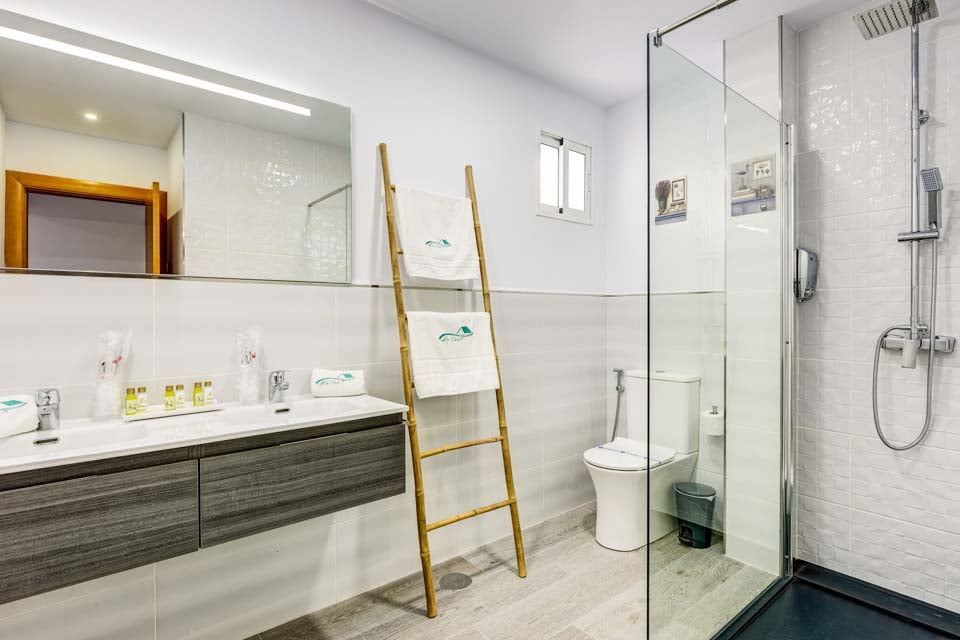 For at få adgang til villaen er der en åben sti, der er 178 cm bred med et trin og en rampe. Hoveddøren har en bredde på 71 cm, mens de andre adgangsdøre har en bredde på 71 cm. Udendørsarealet er fladt med et trin på 10 cm ind til villaen. Bred sti og rampe til hoveddøren fra indgangsporten. Stien til poolen er 156 cm bred, og der er en rampe til rådighed. Selve poolen har trinadgang. Inde i villaen er den bredeste soveværelsesdør 70 cm bred, og den bredeste badeværelsesdør er 67 cm bred, og den har et brusebad. Der er 16 trin til første sal. Døren ind til køkkenområdet er 72 cm bred, mens døren ind til stuen er 72 cm bred. *Bemærk venligst, at selvom vi har gjort alt for at sikre, at de givne oplysninger er nøjagtige, kan der forekomme fejl, og hvis du har brug for mere specifik information om villaen, er du velkommen til at kontakte os.