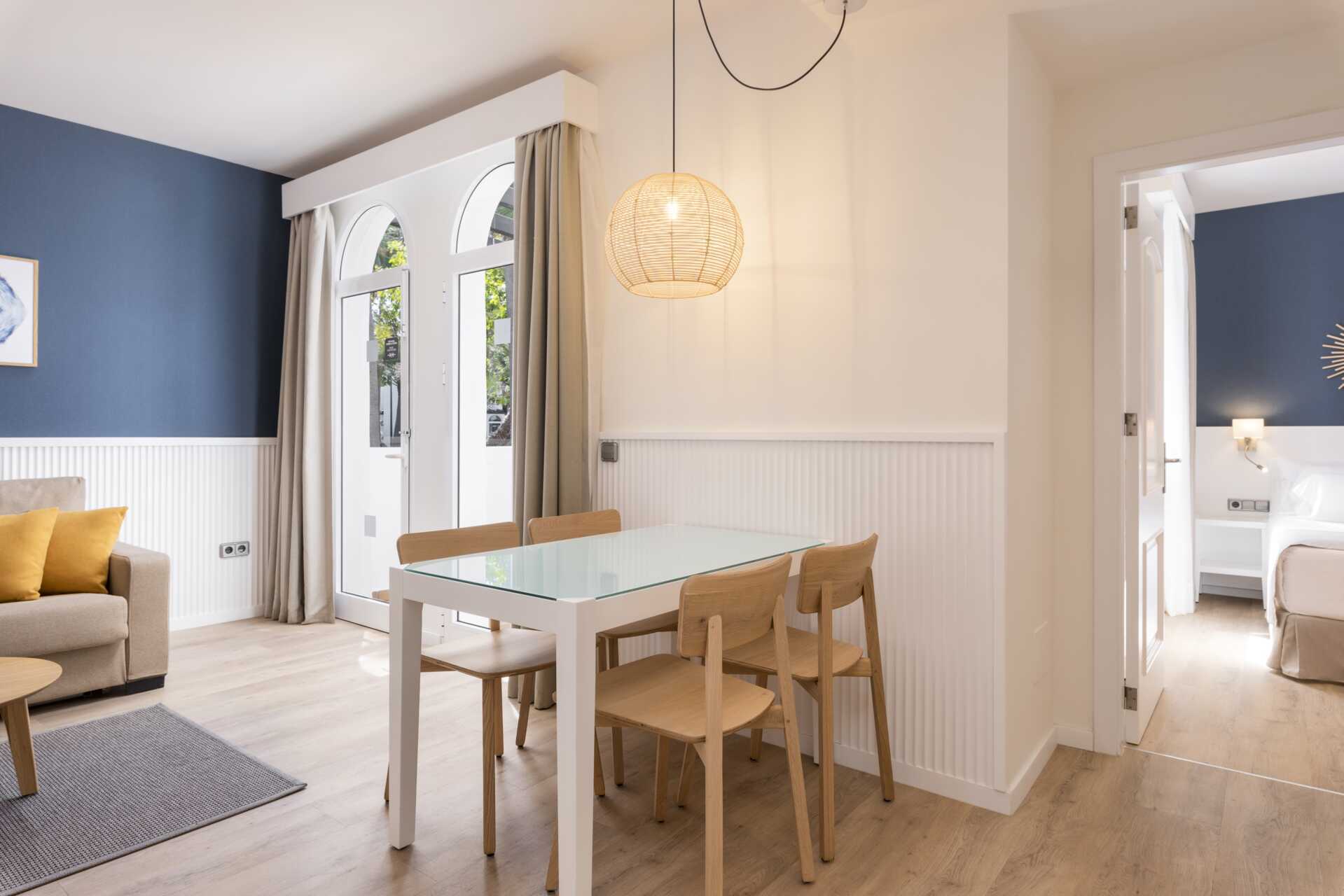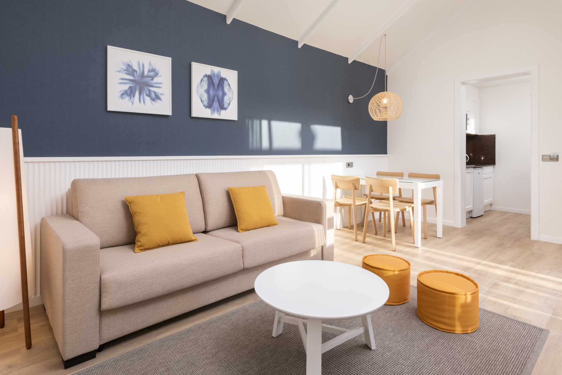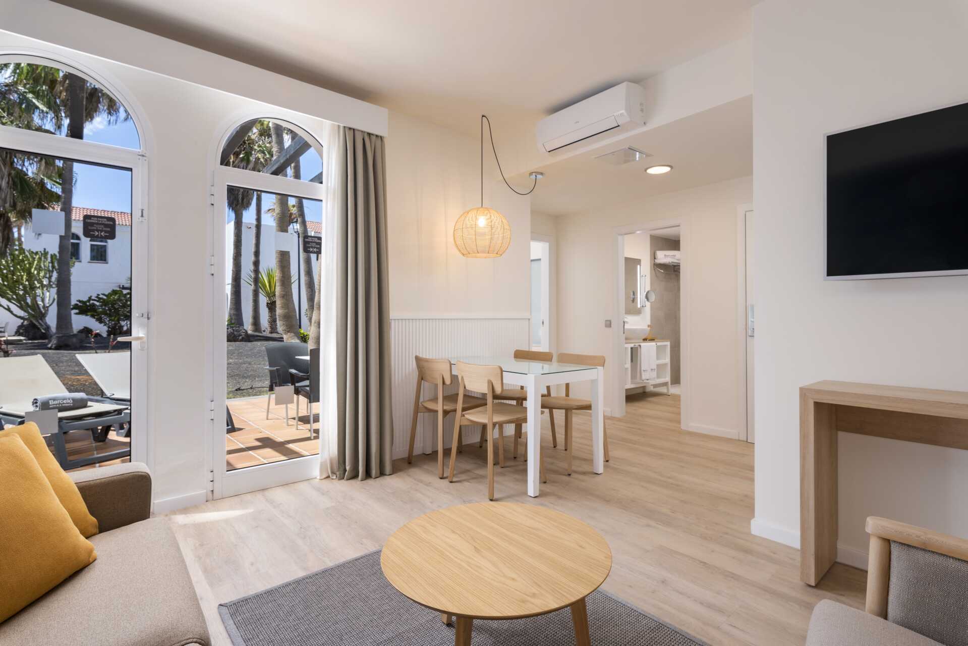 2-værelses lejlighed som er beliggende i bungalowbygninger spredt ud over området. Balkon eller terrasse, nogle lejligheder har to terrasser. Lejlighederne har forskellige planløsninger. Et soveværelse og et kombineret opholdsrum med minikøkken. En dobbeltseng eller to enkeltsenge. Mulighed for ekstra opredninger i sovesofa. Minikøkken med køleskab, kogeplader, mikrobølgeovn i nogle lejligheder, el-kedel og enkelt køkkenudstyr. Tv med internationale kanaler. Gratis wifi og aircondition. Deponering mod betaling. Hårtørrer. Badeværelse med badekar eller bruser samt toilet. Rengøring 7 gange om ugen.
