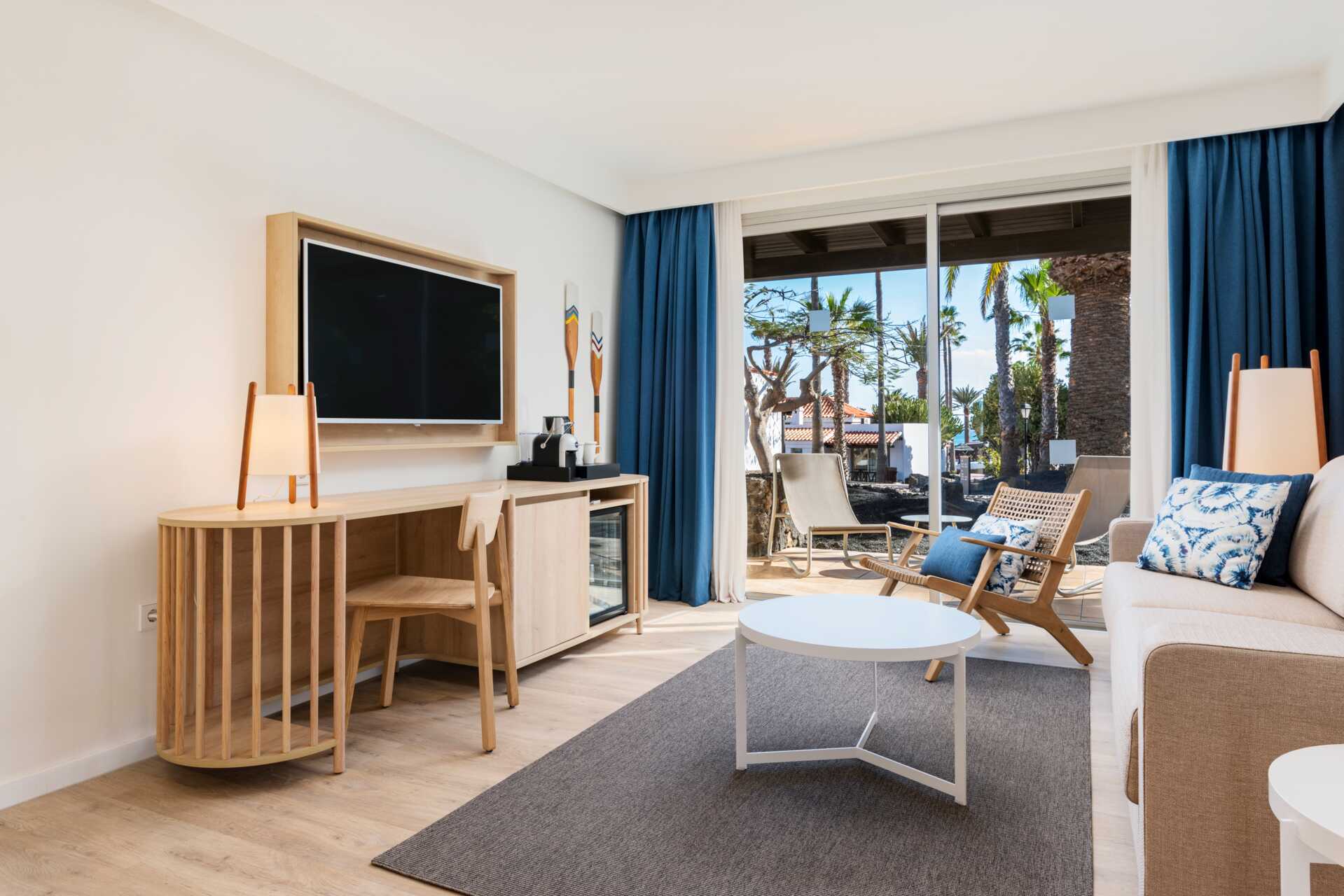 2-værelses suiter med balkon eller terrasse. Opholdsrum og soveværelse. En dobbeltseng. Pudemenu. Gratis wifi, aircondition og deponering. El-kedel og kaffe/te. Minibar - fyldes ved ankomst, genopfyldes mod betaling, flaskevand indgår og genopfyldes i løbet af ugen. Tv med internationale kanaler. Badekåber og tøfler. Hårtørrer. Badeværelse med bruser og toilet. Rengøring 7 gange om ugen.