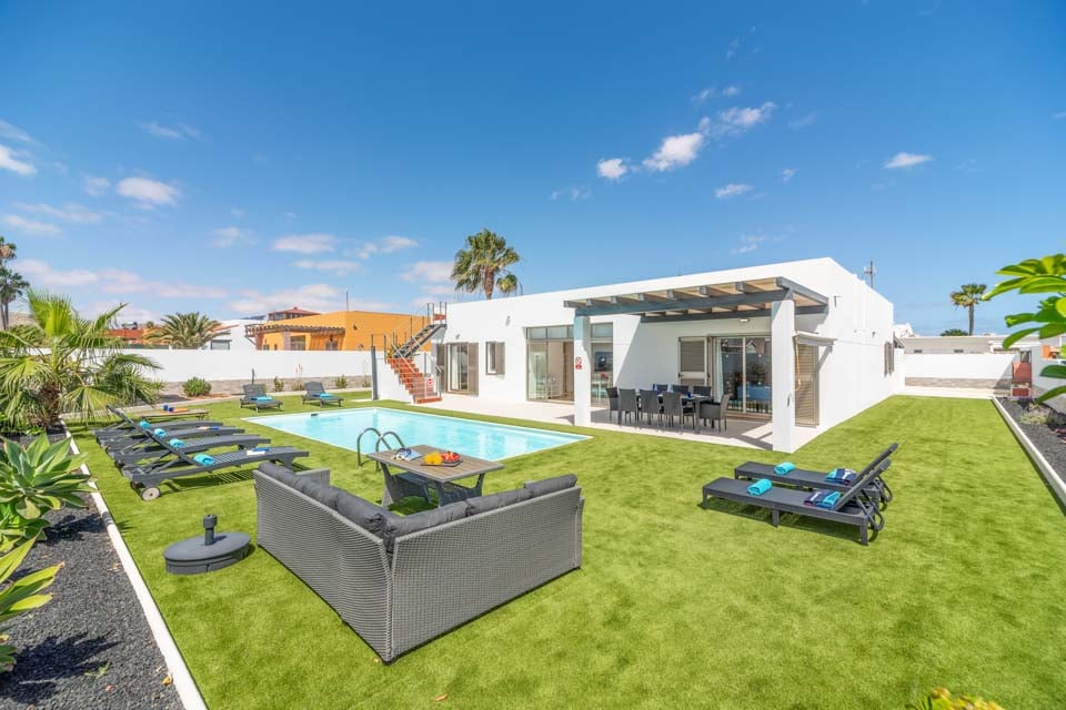 Tag springet og lav et plask i din helt egen private pool. Omgivet af en kunstig græsplæne står det klare blå vand i skarp kontrast og venter bare på, at du tager en dukkert. Få mest muligt ud af den smukke morgensol med en svømmetur i de tidlige timer, eller vælg en mere sjov tid med dine nærmeste, hvor du spiller spil og bruger oppustelige ting om eftermiddagen. Nyd solen på liggestolene og få en solbrun kulør, når du har lyst. Fuerteventuras sol er klar til dig året rundt, uanset hvornår du besøger stedet.