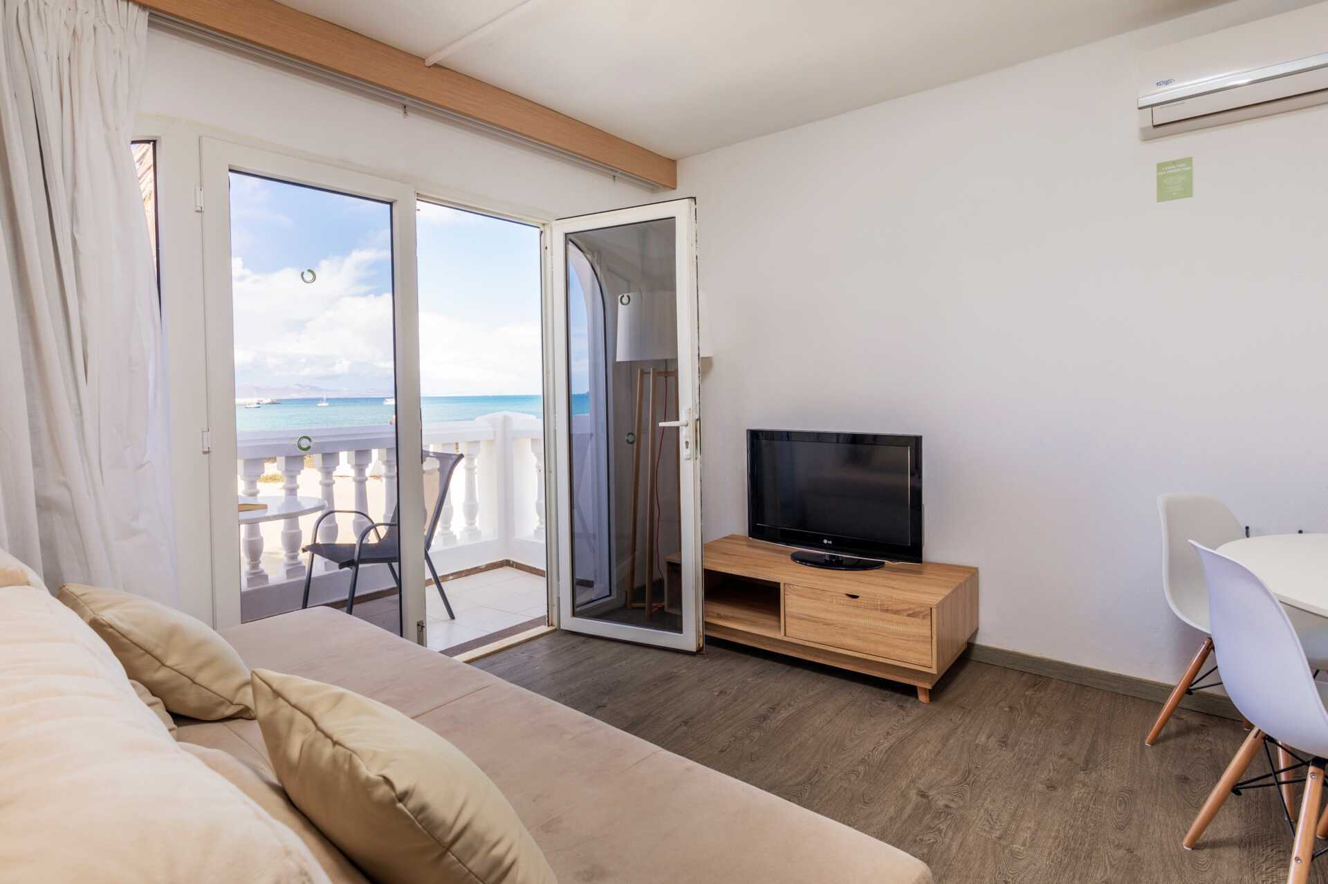 2-værelses lejlighed med balkon og havudsigt. Lejlighederne har forskellige planløsninger. Soveværelse og kombineret opholdsrum/minikøkken. To enkeltsenge. Mulighed for ekstra opredning i sovesofa. Mini køkken med køleskab. kogeplader, mikrobølgeovn, el-kedel, brødrister og enkelt køkkenudstyr. Der er også kaffemaskine i lejligheden, kapsler medfølger ikke men kan købes i receptionen. Gratis wifi. Gratis aircondition og findes kun i opholdsrummet. Deponering mod betaling. Tv med lokale kanaler. Badeværelse med bruser og toilet. Rengøring 3 gange om ugen.