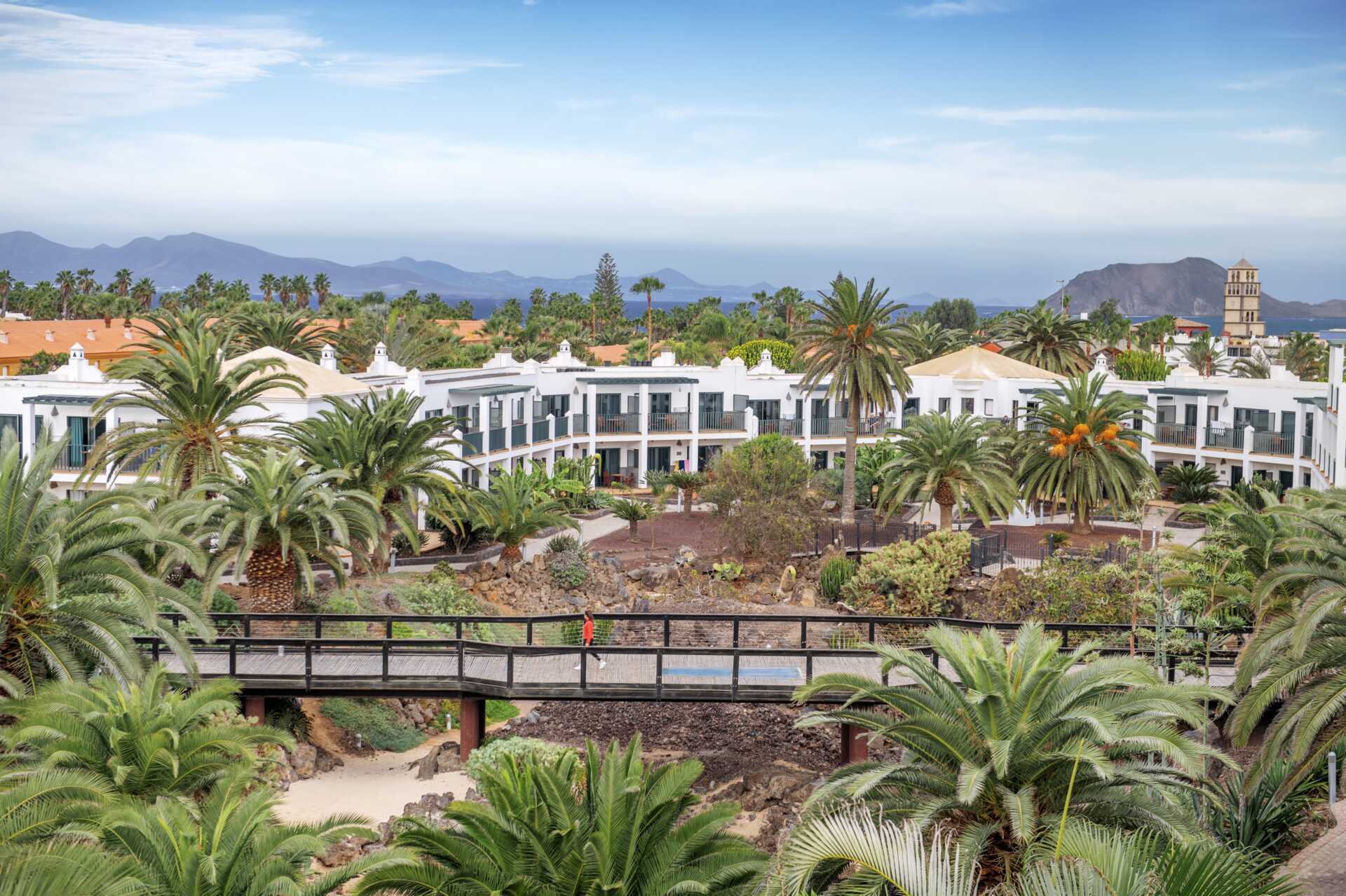 Det smukke velplejede ude område med palmer og blomster .