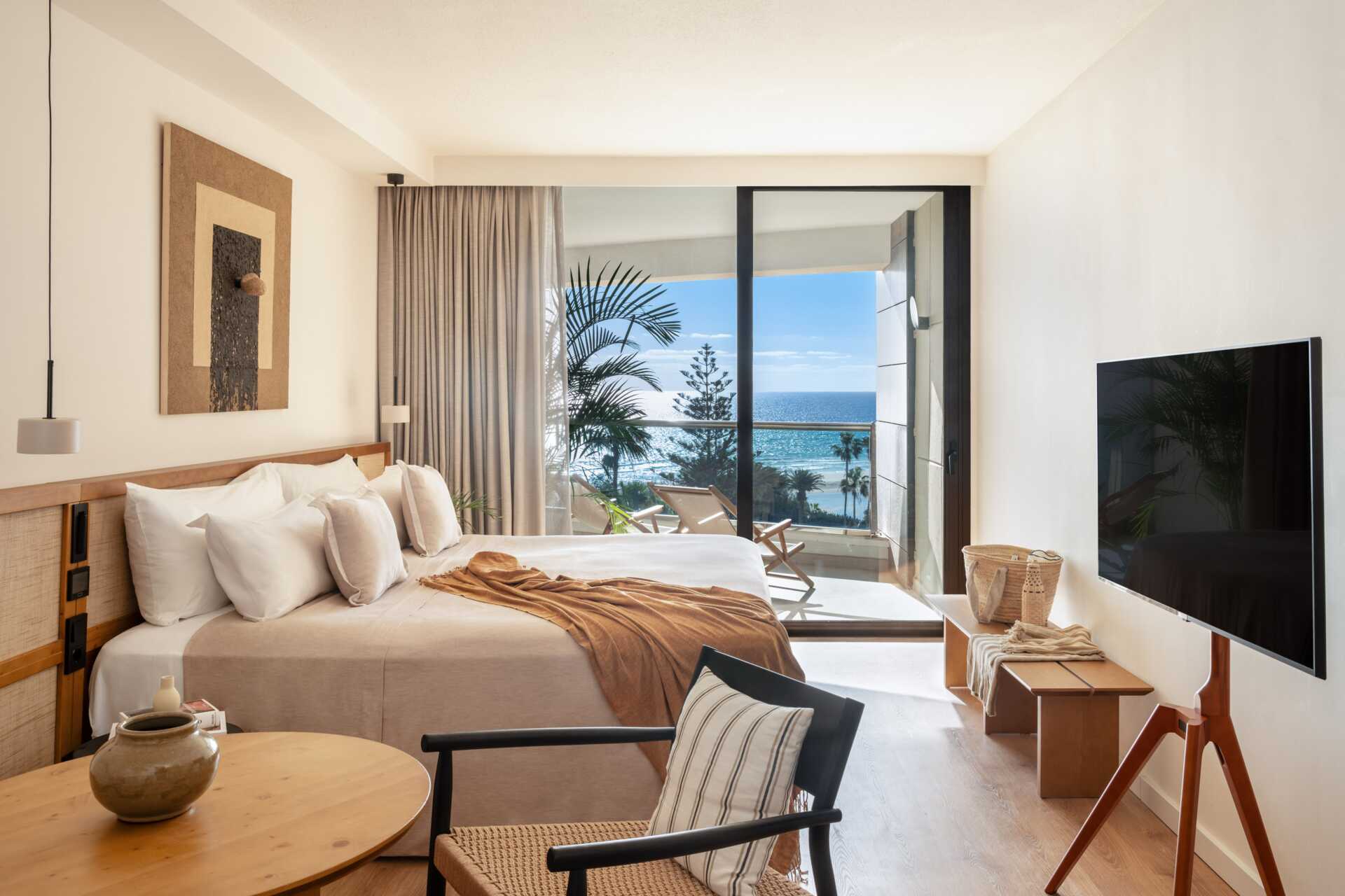 Dobbeltværelse med balkon eller terrasse, nogle med havudsigt eller delvis havudsigt. Der er to sammenklappelige solstole på terrassen. En dobbeltseng eller to enkeltsenge. Mulighed for ekstra opredning i sovesofa. Gratis wifi og aircondition. Loftsvifte. Deponering mod betaling. Minibar mod betaling. Tv med internationale kanaler. Strygejern og strygebræt mod depositum. Hårtørrer. Badeværelse med bruser og toilet. Rengøring 7 gange om ugen.