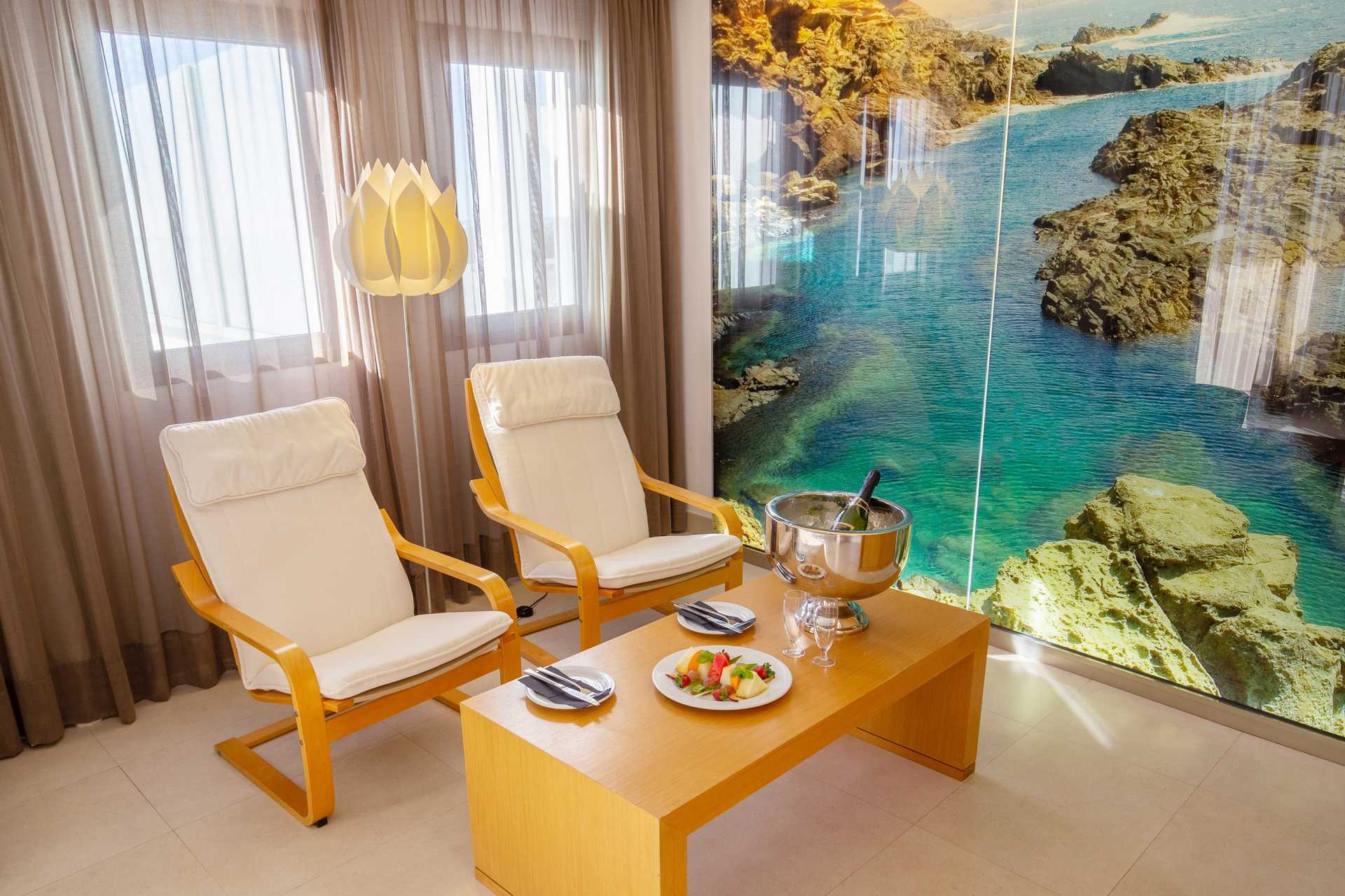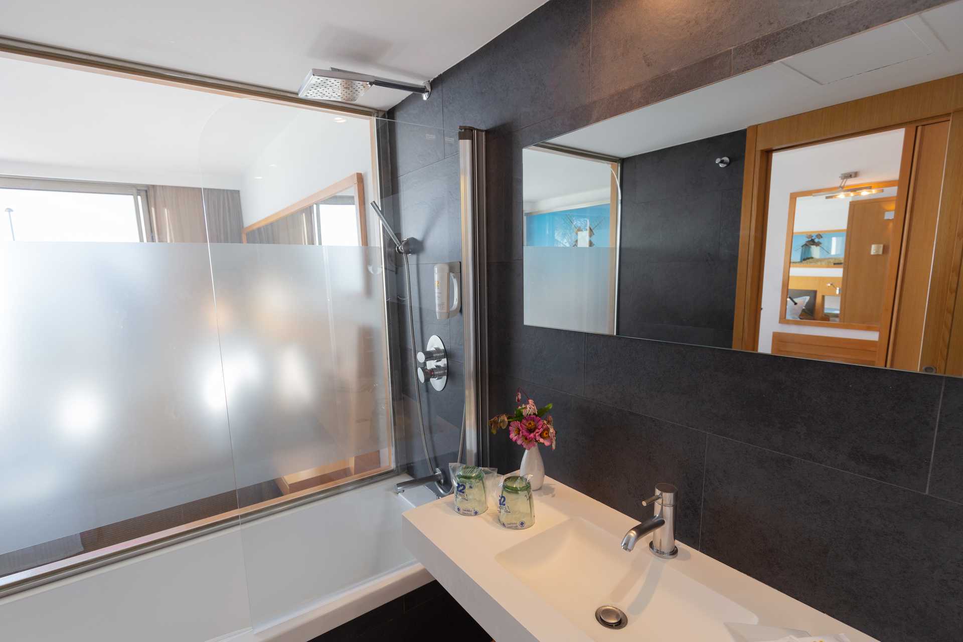 Junior-suite med balkon eller terrasse og udsigt over poolen eller havet. Junior-suite med havudsigt har to solstole på balkonen. Siddegruppe. Gratis wifi og centralt styret aircondition. Deponering mod betaling. To enkeltsenge. Minibar. Tv med internationale kanaler. Hårtørrer. Badeværelse med badekar eller bruser samt toilet. Matteret glasvæg mellem badeværelset og soveværelset. Rengøring 7 gange om ugen.