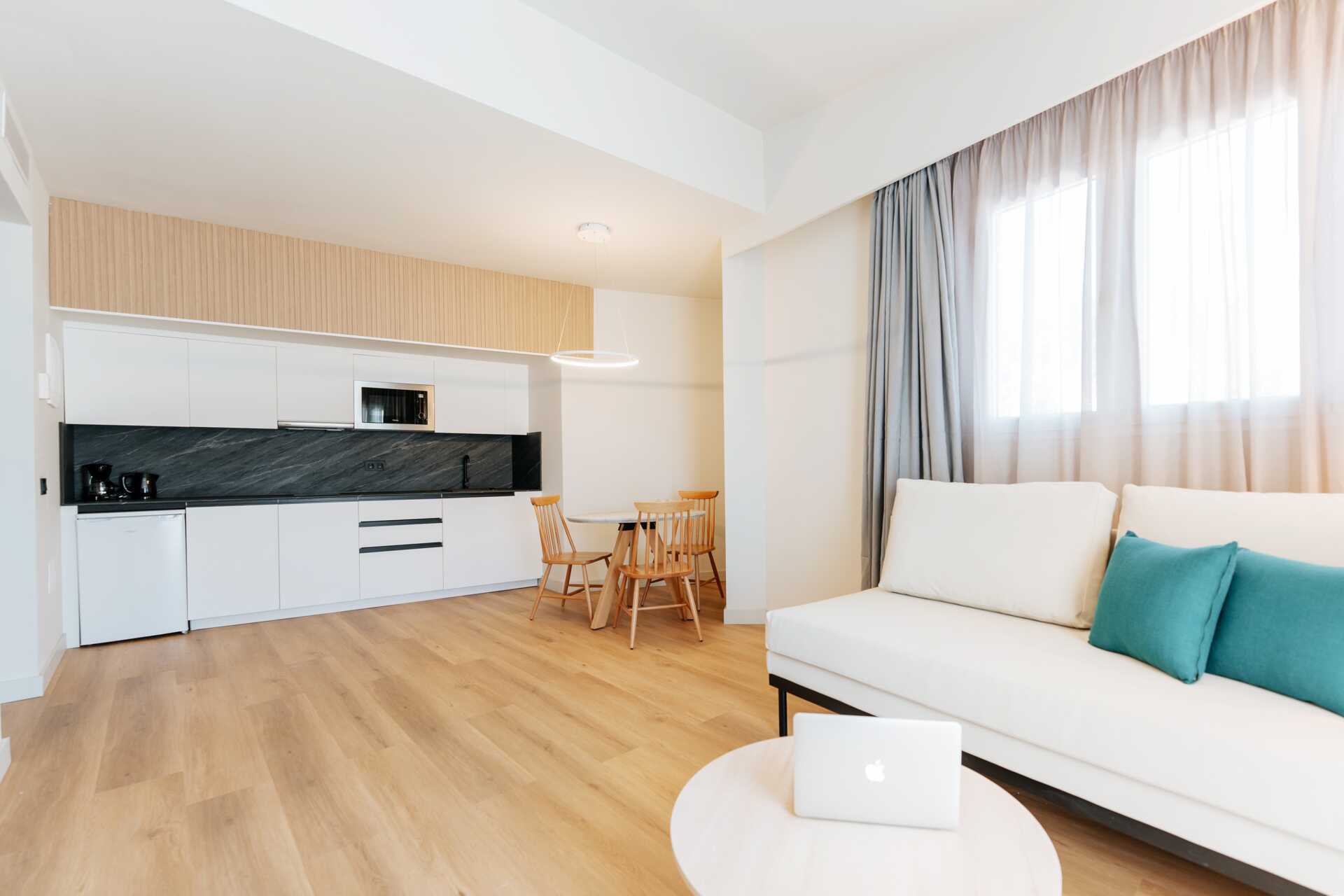 Større 1-værelses lejlighed med balkon eller terrasse, alternativt med balkon og delvis havudsigt. Lejligheden består af et soveværelse og et opholdsrum med minikøkken. En dobbeltseng eller to enkeltsenge. Mulighed for ekstra opredning i sovesofa. Minikøkken med køleskab, kogeplader, kaffemaskine, el-kedel, brødrister og enkelt køkkenudstyr. Gratis wifi og aircondition. Deponering mod betaling. Tv med internationale kanaler. Hårtørrer. Badeværelse med bruser og toilet. Rengøring 3 gange om ugen.