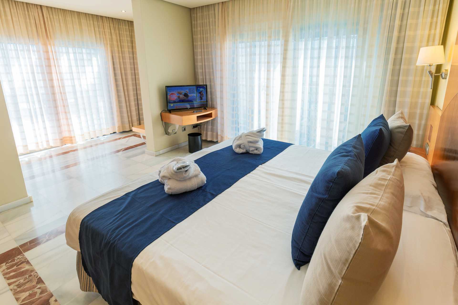 Familie-værelser med balkon eller terrasse med delvis havudsigt. Familie-værelset består af et opholdsrum og et soveværelse. Gratis wifi og aircondition. Deponering mod betaling. Køleskab. Tv med internationale kanaler. Hårtørrer. Et eller to badeværelser med badekar og toilet. Rengøring 7 gange om ugen. Børn under to år tæller med i det maksimale antal personer på værelset.