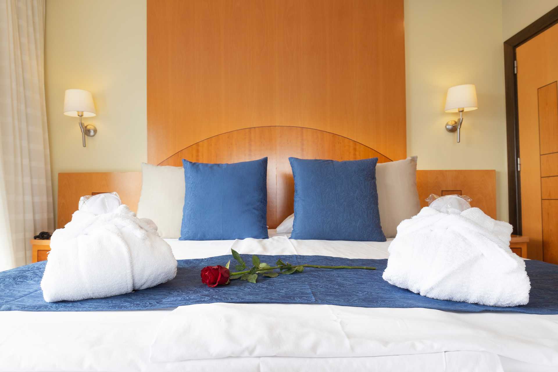 Dobbeltværelser med balkon eller terrasse, nogle med delvis havudsigt. To enkeltsenge. Mulighed for ekstra opredning. Gratis wifi og aircondition. Deponering mod betaling. Køleskab. Tv med internationale kanaler. Hårtørrer. Badeværelse med badekar og toilet. Rengøring 7 gange om ugen. Børn under to år tæller med i det maksimale antal personer på værelset.