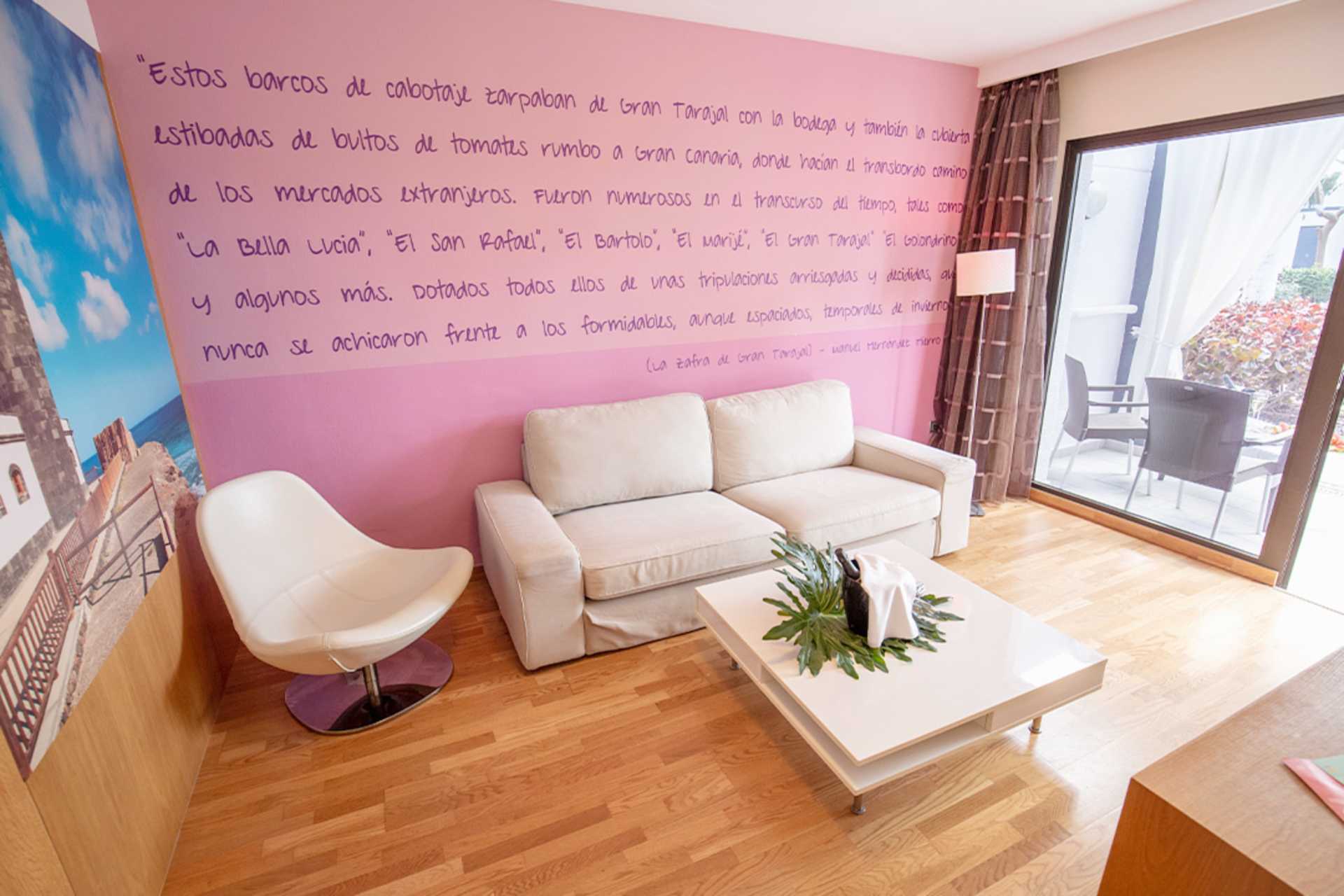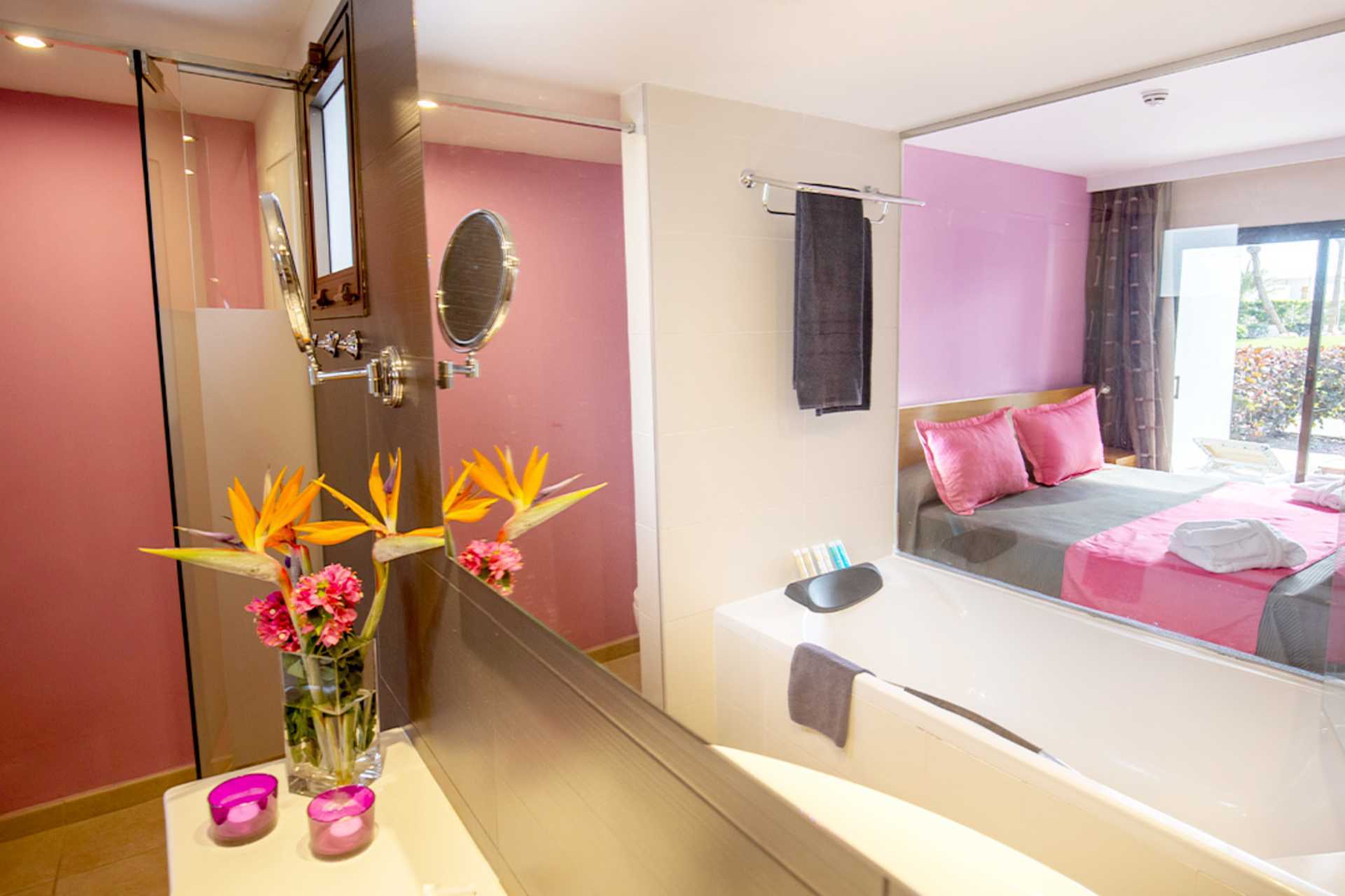 Superior-suite med terrasse. Suiten består af et opholdsrum og et soveværelse. En dobbeltseng. Mulighed for ekstra opredning i sovesofa. Gratis wifi og aircondition. Deponering mod betaling. Minibar. El-kedel og kaffe/te. Tv med internationale kanaler. Badekåber og tøfler. Pool- og strandhåndklæder Hårtørrer. Badeværelse med badekar til to, bruser og toilet. Materet glasvæg mellem bruseren og værelset. Rengøring 7 gange om ugen.