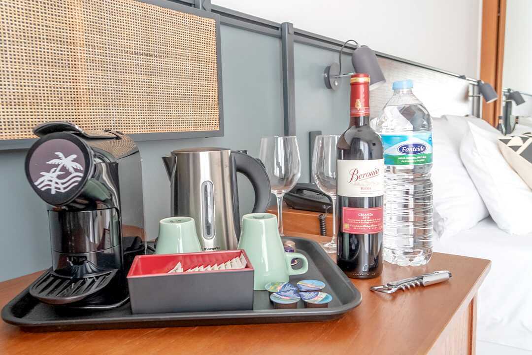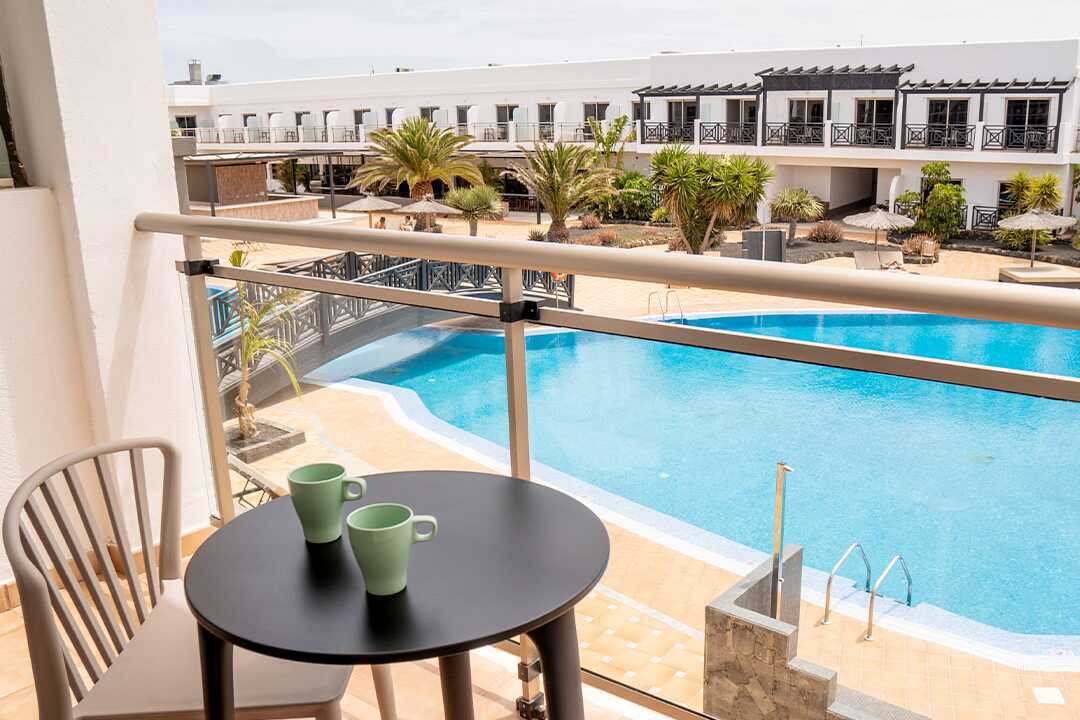 Superior-værelse med balkon eller terrasse, nogle med pooludsigt. To enkeltsenge. Mulighed for ekstra opredning i fold ud-seng. Gratis wifi, aircondition og deponering. Køleskab. Kaffemaskine (kapsler kan købes i et supermarked på hotellet). El-kedel. Tv med internationale kanaler. Badekåber og tøfler. Hårtørrer. Badeværelse med badekar og toilet. Rengøring 7 gange om ugen. Børn under to år tæller med i det maksimale antal personer på værelset.