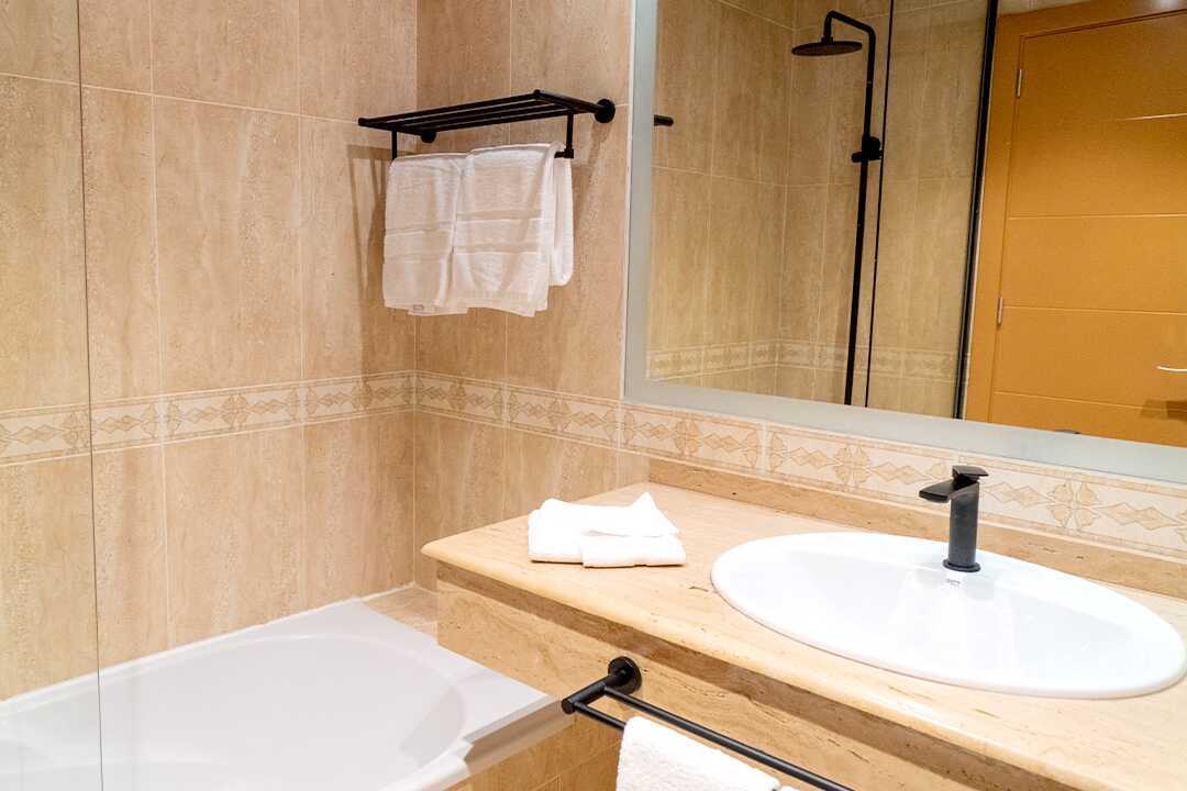 Dobbeltværelser med balkon eller terrasse, nogle med pooludsigt. To enkeltsenge. Mulighed for ekstra opredning i fold ud-seng. Gratis wifi og aircondition. Deponering mod betaling. Køleskab. Kaffemaskine. El-kedel. Tv med internationale kanaler. Hårtørrer. Badeværelse med badekar og toilet. Rengøring 7 gange om ugen. Børn under to år tæller med i det maksimale antal personer på værelset.
