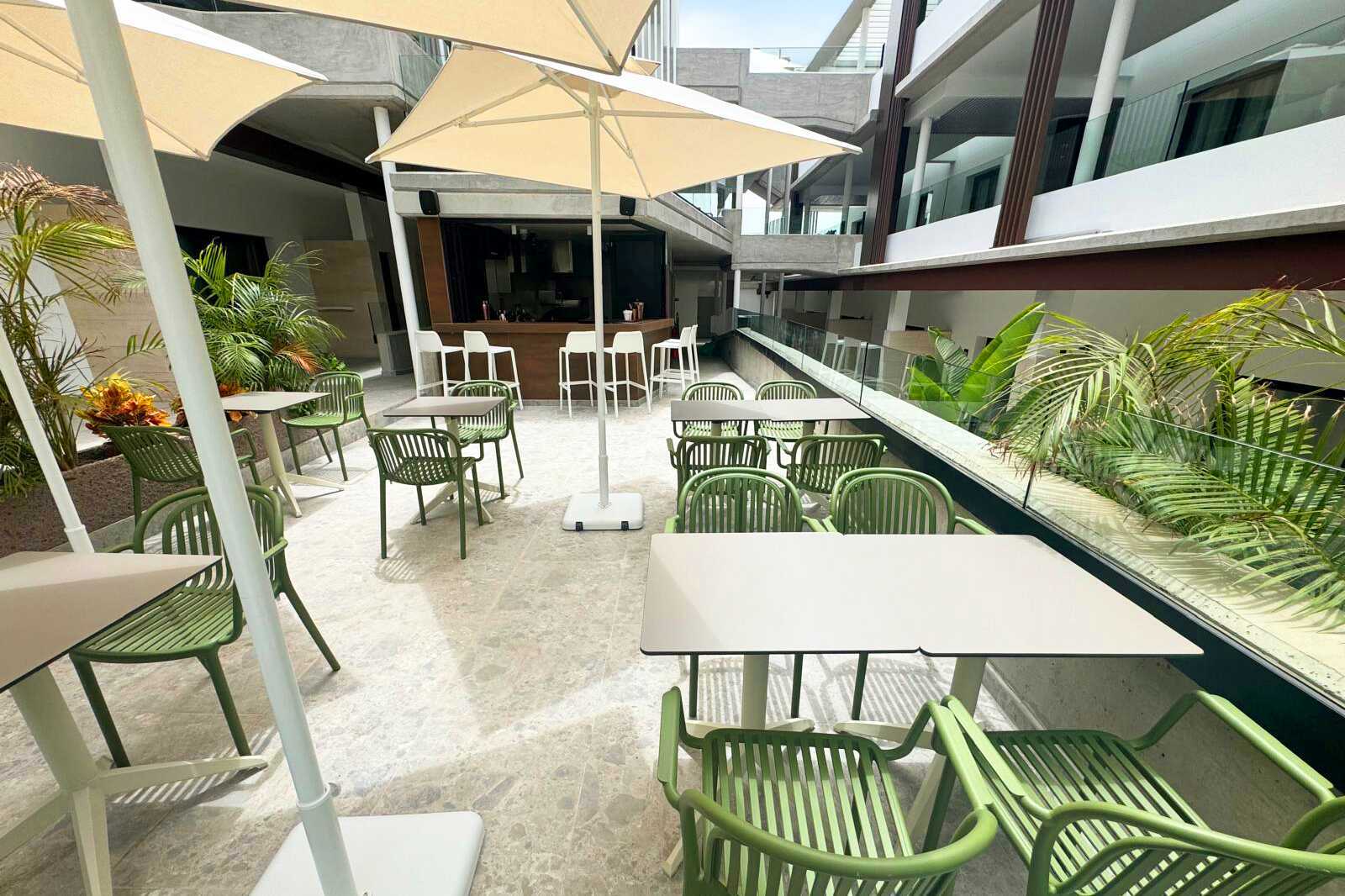Nyt og lækker hotel byggeri, lækker lejlighed, vi havde bolig på 2 sal med dejlig 1.sal med 2 terrasse med borde stole på den ene, og liggestole og rundt badekar.