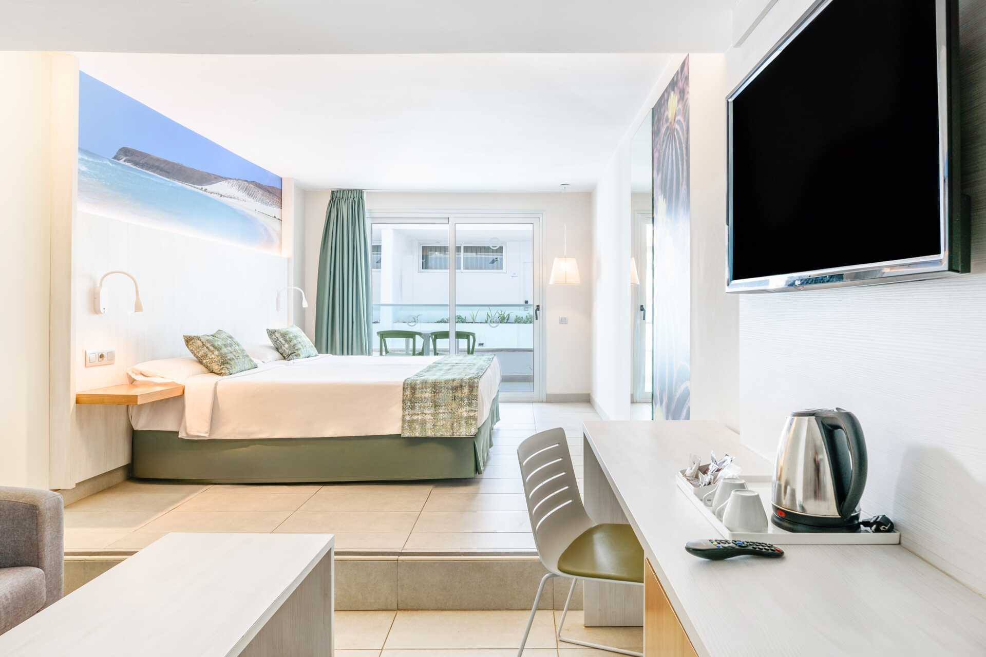 Junior-suiter med balkon, nogle med delvis havudsigt, nogle i etage. Junior-suiterne består af et soveværelse med to enkeltsenge og et opholdsrum med en sovesofa. Junior-suiterne består af et opholdsrum med to enkeltsenge og et badeværelse i stueetagen og en sovesofa ovenpå til ekstra senge - ingen dør mellem etagerne. Gratis wifi, aircondition og deponering. Tv med internationale kanaler. El-kedel samt kaffe/te. Hårtørrer. Badeværelse med bruser og toilet. Rengøring 7 gange om ugen.