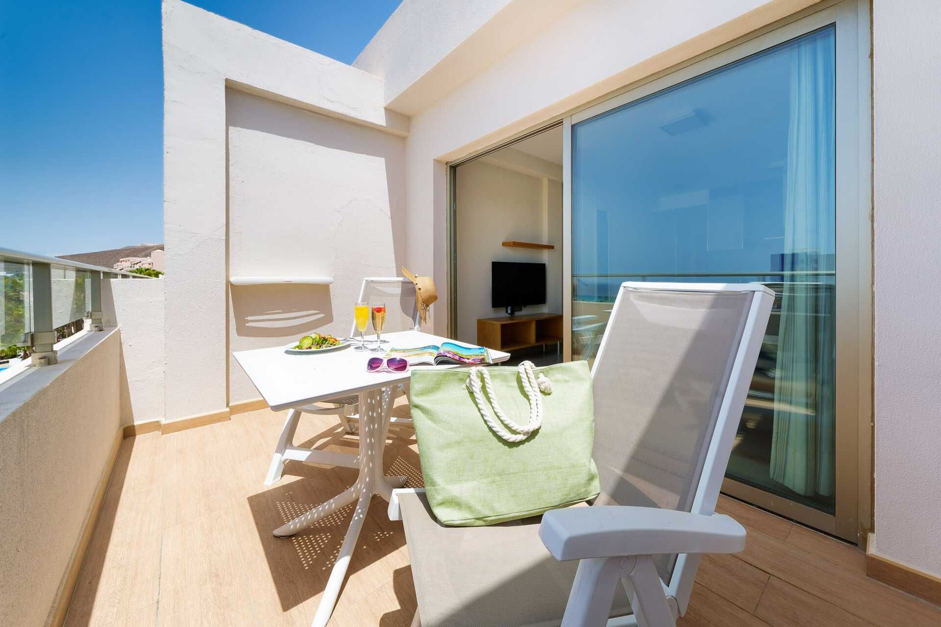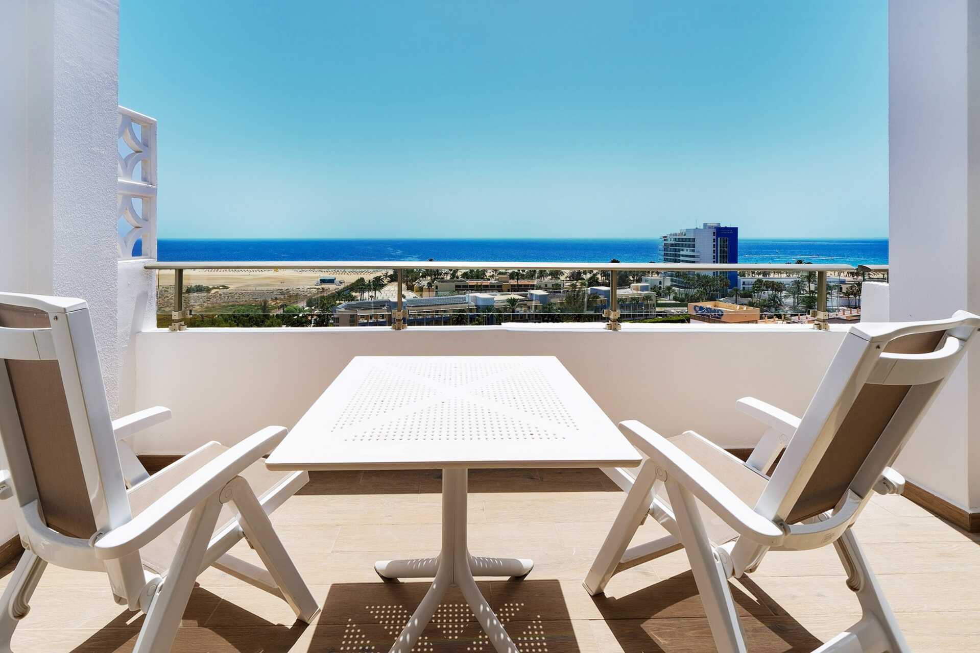 2-værelses lejlighed superior med balkon og havudsigt. Lejlighederne ligger på 4, 5 eller 6. sal. Soveværelse og kombineret opholdsrum/minikøkken. To enkeltsenge. Mulighed for ekstra opredning i sovesofa. Gratis wifi. Deponering mod betaling. Minikøkken med kogeplader, køleskab, kaffebrygger, mikroovn og enkelt køkkenudstyr. Tv med internationale kanaler. Badeværelse med bruser og toilet. Rengøring 3 gange om ugen.