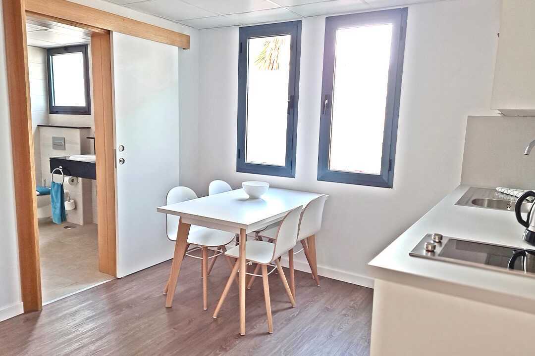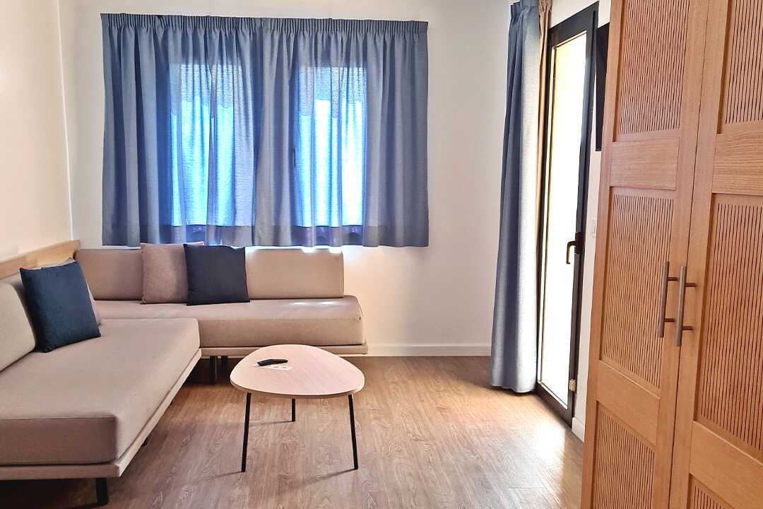 1-værelses lejligheder med balkon eller terrasse i stueplan, nogle med havudsigt eller delvis havudsigt. Lejlighederne blev renoveret i 2022. En dobbeltseng eller to enkeltsenge. Mulighed for ekstra opredning i enkeltsenge. Kombineret soveværelse og minikøkken. Soveområdet er adskilt fra køkkenområdet med et par trin. Minikøkken med kogeplader, køleskab, mikroovn, kaffemaskine, el-kedel og enkelt køkkenudstyr. Gratis wifi, aircondition (centralstyret) og deponering. Tv med internationale kanaler. Hårtørrer. Badeværelse med bruser samt toilet. Rengøring 5 gange om ugen.