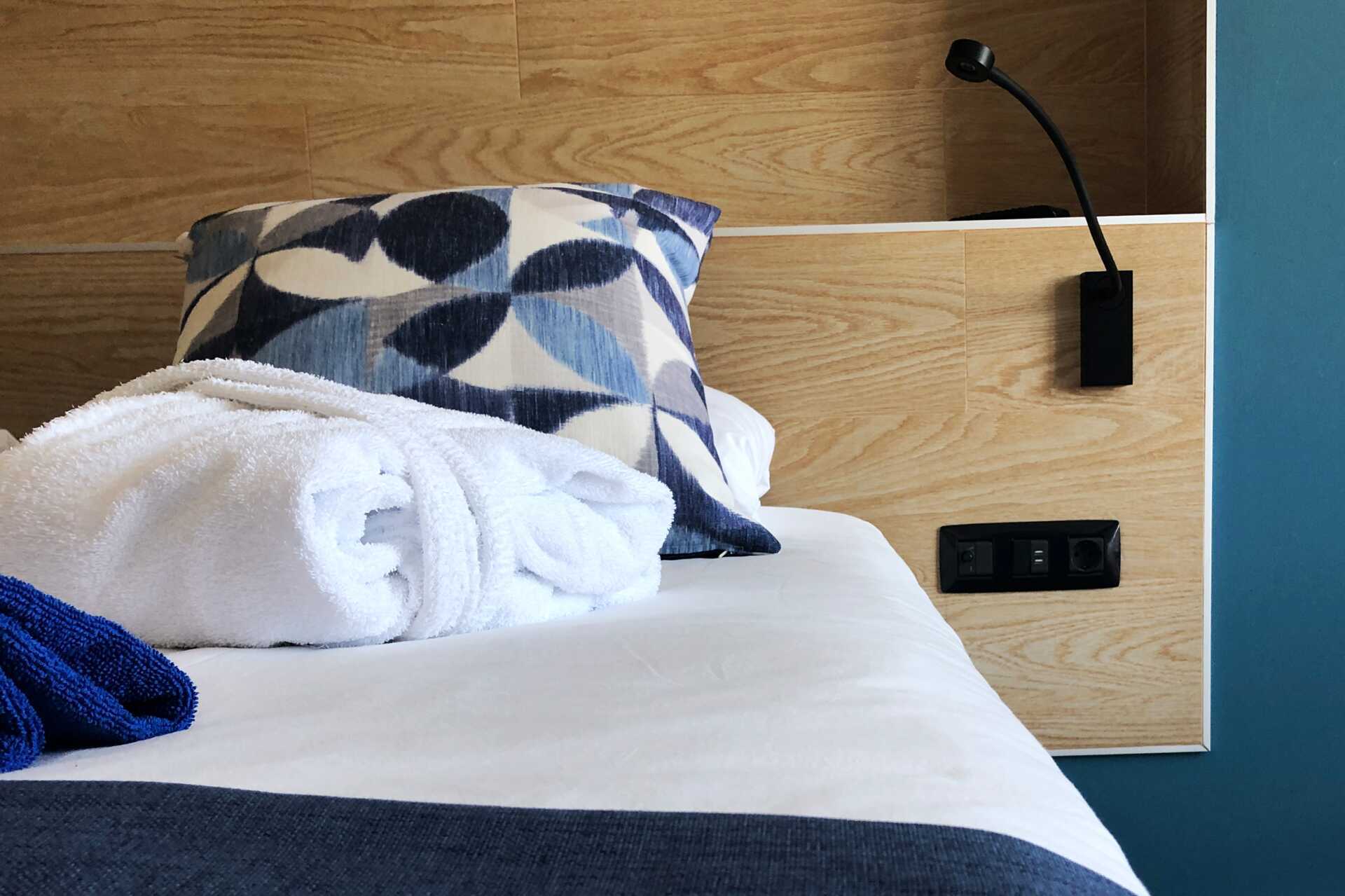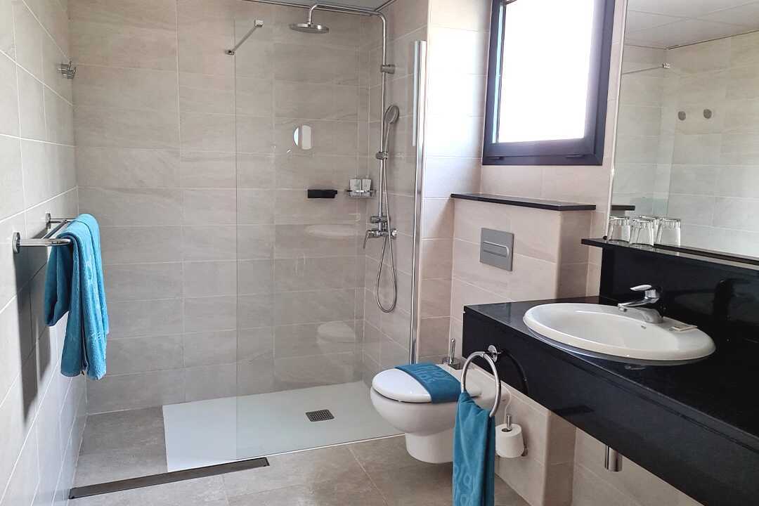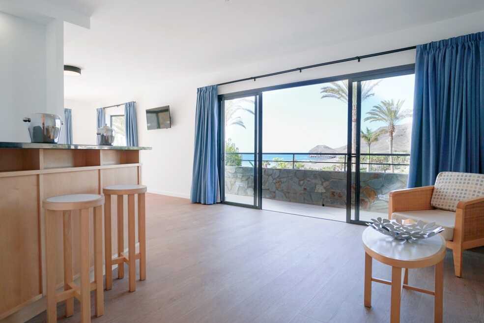 Junior-suiter med balkon, nogle med havudsigt eller delvis havudsigt. En dobbeltseng. Mulighed for ekstra opredning i sovesofa eller fold ud-seng. Gratis wifi, deponering og aircondition. Minibar, genopfyldning kan bestilles i receptionen. El-kedel. Tv med internationale kanaler. Hårtørrer. Mulighed for leje af badekåber. Badeværelse med bruser og toilet. Rengøring 7 gange om ugen.