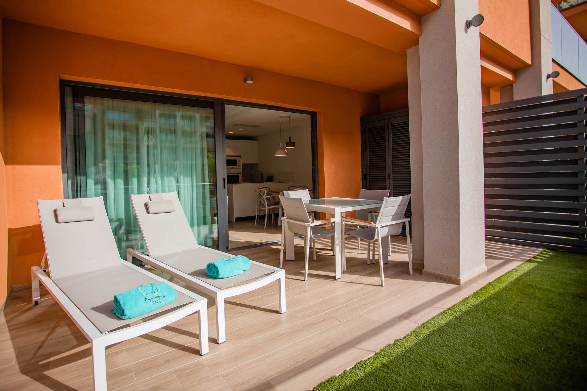 3-værelses lejligheder med balkon. To soveværelser samt kombineret opholdsrum og minikøkken. I hvert soveværelse er der to enkeltsenge. Mulighed for ekstra opredninger i sovesofa. Minikøkken med køleskab med fryser, opvaskemaskine, kaffemaskine, el-kedel, brødrister, ovn og køkkenudstyr. Gratis wifi, aircondition og deponering. Tv med internationale kanaler. Strygefaciliteter. Hårtørrer. To badeværelser med bruser og toilet. Rengøring 5 gange om ugen.