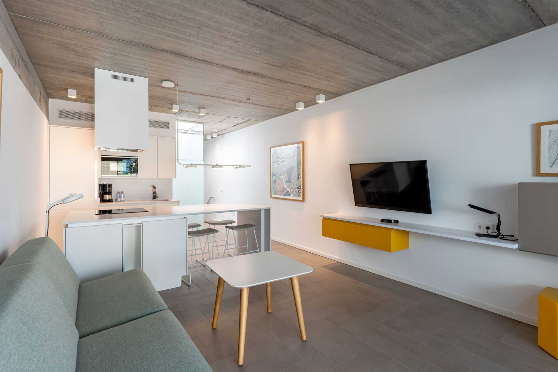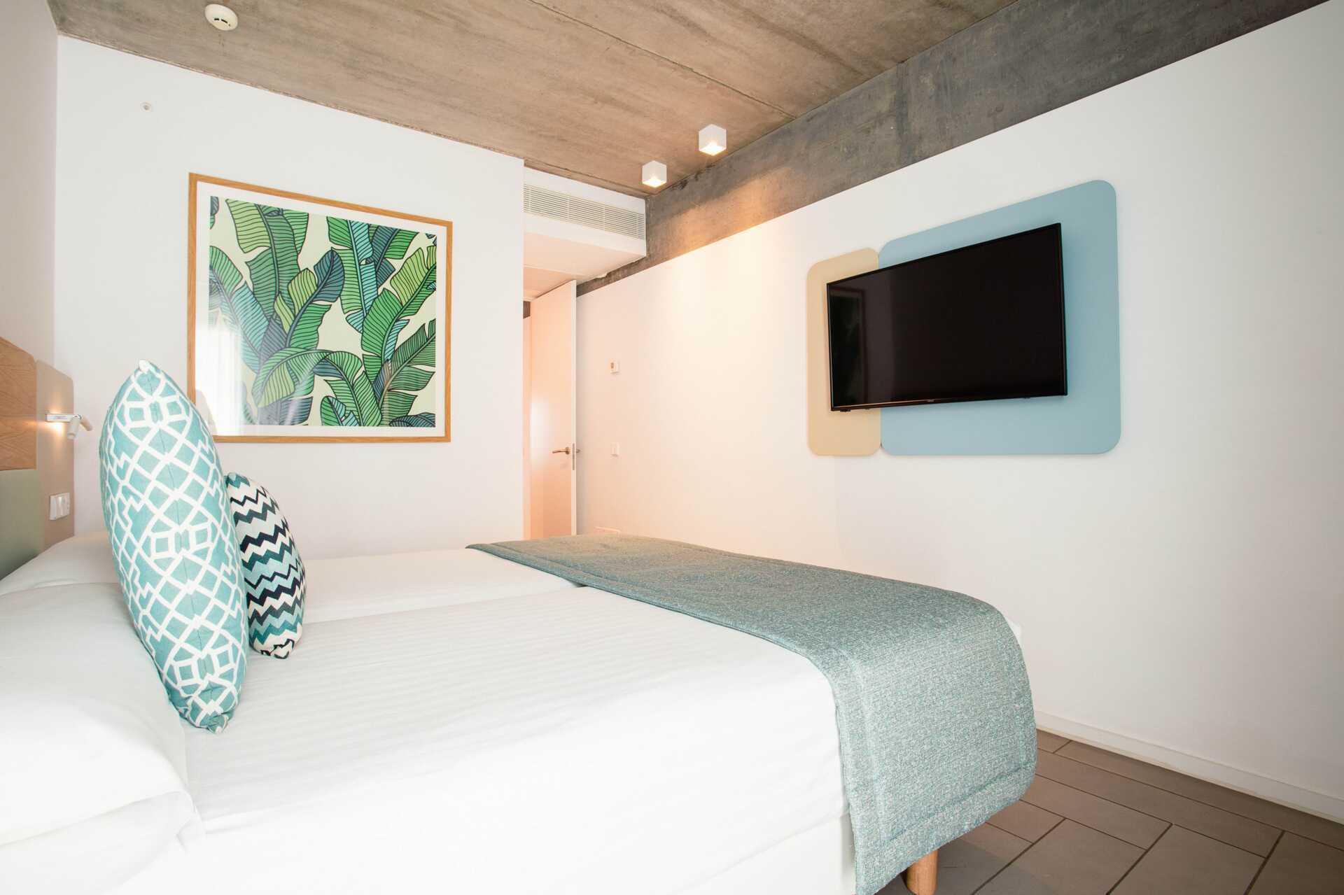 3-værelses lejlighed med terrasse i stueplan. Lejlighederne ligger i hovedbygningen. To soveværelser og et kombineret opholdsrum med minikøkken. To enkeltsenge i hvert soveværelse. Minikøkken med køleskab, fryser, mikroovn, opvaskemaskine, brødrister, kaffemaskine, el-kedel, æggekoger og enkelt køkkenudstyr. Gratis wifi, aircondition og deponering. Tv med internationale kanaler. Badekåber. Poolhåndklæder. Hårtørrer. Badeværelse med bruser og toilet. Rengøring 7 gange om ugen.