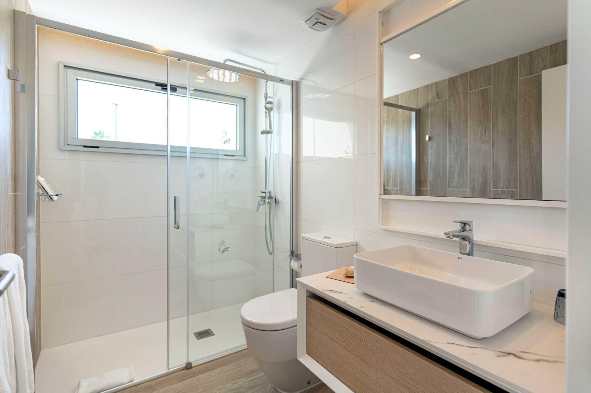 3-værelses lejlighed med terrasse og privat pool. På terrassen er der stole og borde, et spisebord og solstole. Poolen er opvarmet til mindst 22 grader om vinteren. Pooltemperaturen kan dog falde et par grader om morgenen, aftenen og i dårligt vejr. To soveværelser og kombineret opholdsrum med minikøkken. To enkeltsenge i hvert soveværelse. Mulighed for ekstra opredning i sovesofa. Minikøkken med køleskab, fryser, mikrobølgeovn, opvaskemaskine, brødrister, kaffemaskine, el-kedel, æggekoger og enkelt køkkenudstyr. Gratis wifi, aircondition og deponering. Tv med internationale kanaler. Badekåber. Poolhåndklæder. Hårtørrer. To badeværelser med bruser. Rengøring 7 gange om ugen.