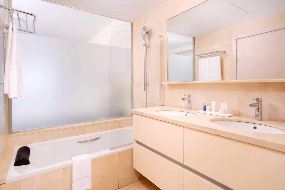 2-værelses lejlighed superior med balkon og havudsigt. Soveværelse og kombineret opholdsrum med minikøkken. En dobbeltseng eller to enkeltsenge. Mulighed for ekstra opredninger i sovesofa. Minikøkken med køleskab og fryser, kogeplader og ovn, mikrobølgeovn, Nespresso-kaffemaskine, brødrister og enkelt køkkenudstyr samt opvaskemaskine. Gratis wifi, aircondition og deponering. El-kedel og kaffe/te. Tv med internationale kanaler. Strygejern og strygebræt. Badekåbe og tøfler til voksne. Hårtørrer. Badeværelse med badekar eller bruser samt toilet. Rengøring 7 gange om ugen.