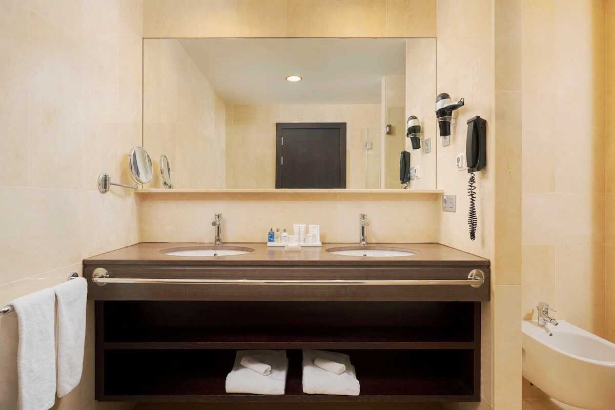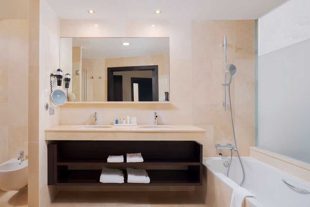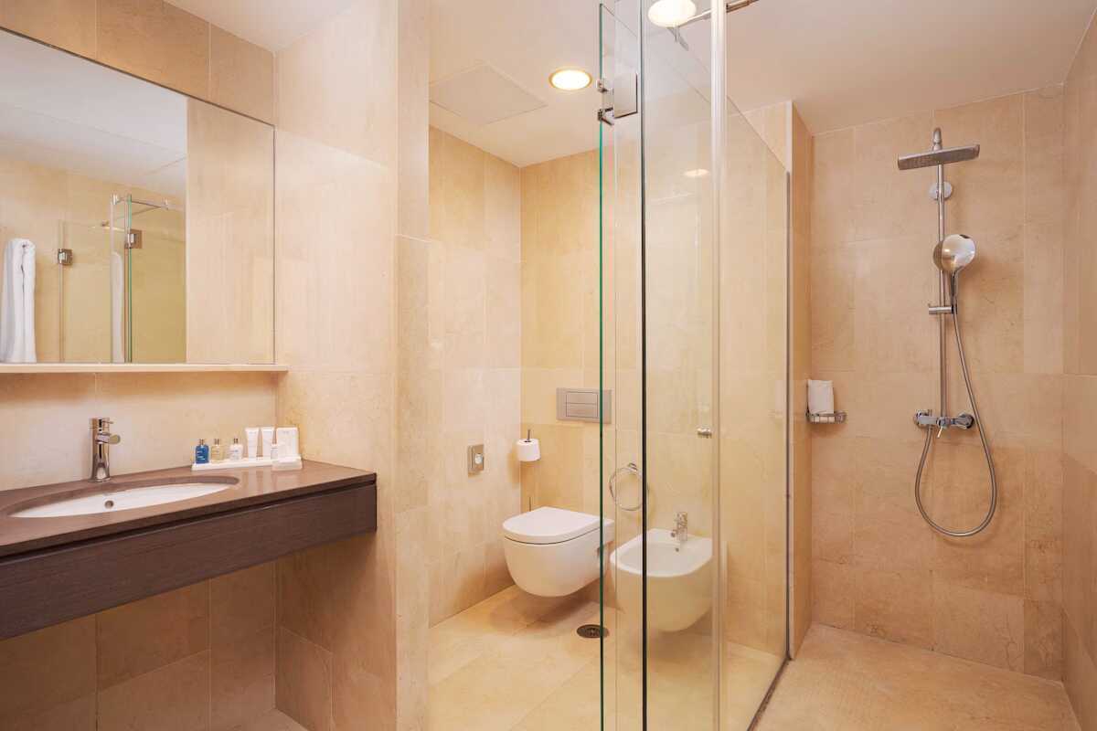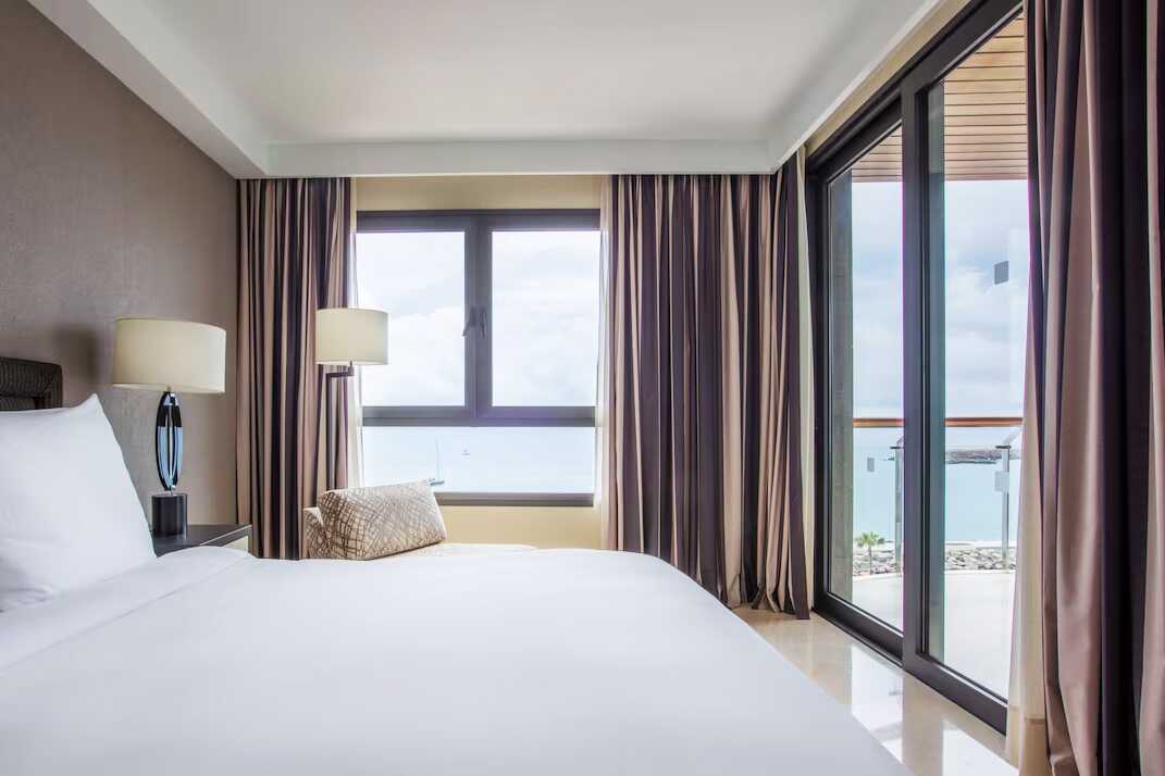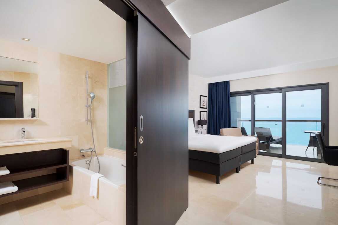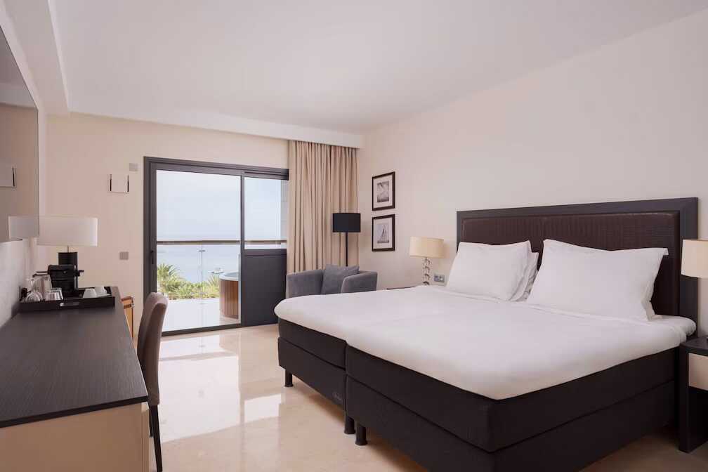 Dobbeltværelse med balkon og havudsigt. To enkeltsenge. Gratis wifi, aircondition og deponering. El-kedel og kaffe/te. Tv med internationale kanaler. Strygejern og strygebræt. Badekåbe og tøfler til voksne. Hårtørrer. To badeværelser med badekar eller bruser samt toilet. Rengøring 7 gange om ugen.