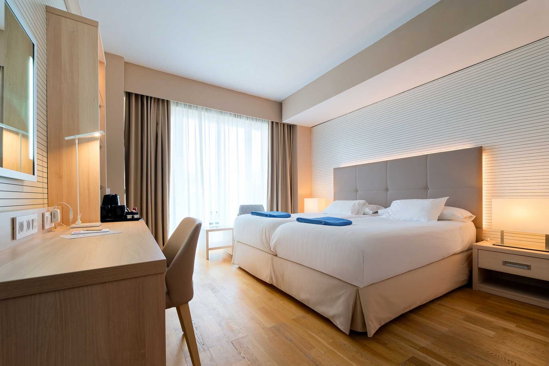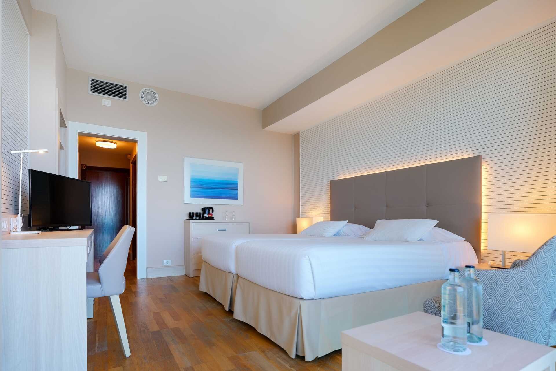 Dobbeltværelser med balkon, nogle med havudsigt. En dobbeltseng eller to enkeltsenge. Mulighed for ekstra opredning i fold ud-seng. Gratis wifi og aircondition. Deponering mod betaling. Minibar. Tv med internationale kanaler. Tøfler. Hårtørrer. Badeværelse med bruser og toilet. Rengøring 7 gange om ugen. Børn under to år tæller med i det maksimale antal personer på værelset.