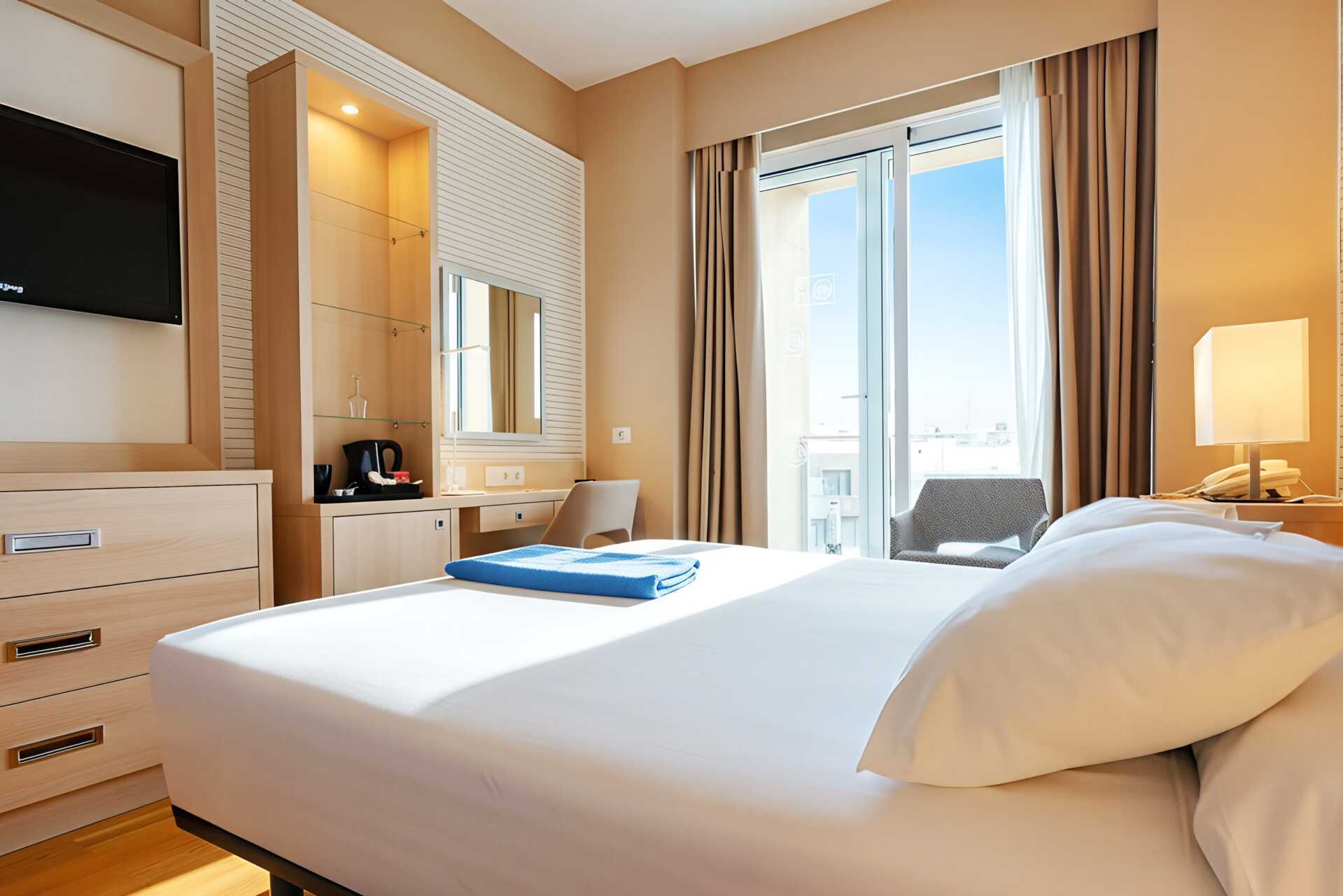 Enkeltværelse med balkon. Gratis wifi og aircondition. Deponering mod betaling. Minibar. Tv med internationale kanaler. Hårtørrer. Badeværelse med bruser og toilet. Rengøring 7 gange om ugen. Børn under to år tæller med i det maksimale antal personer på værelset.