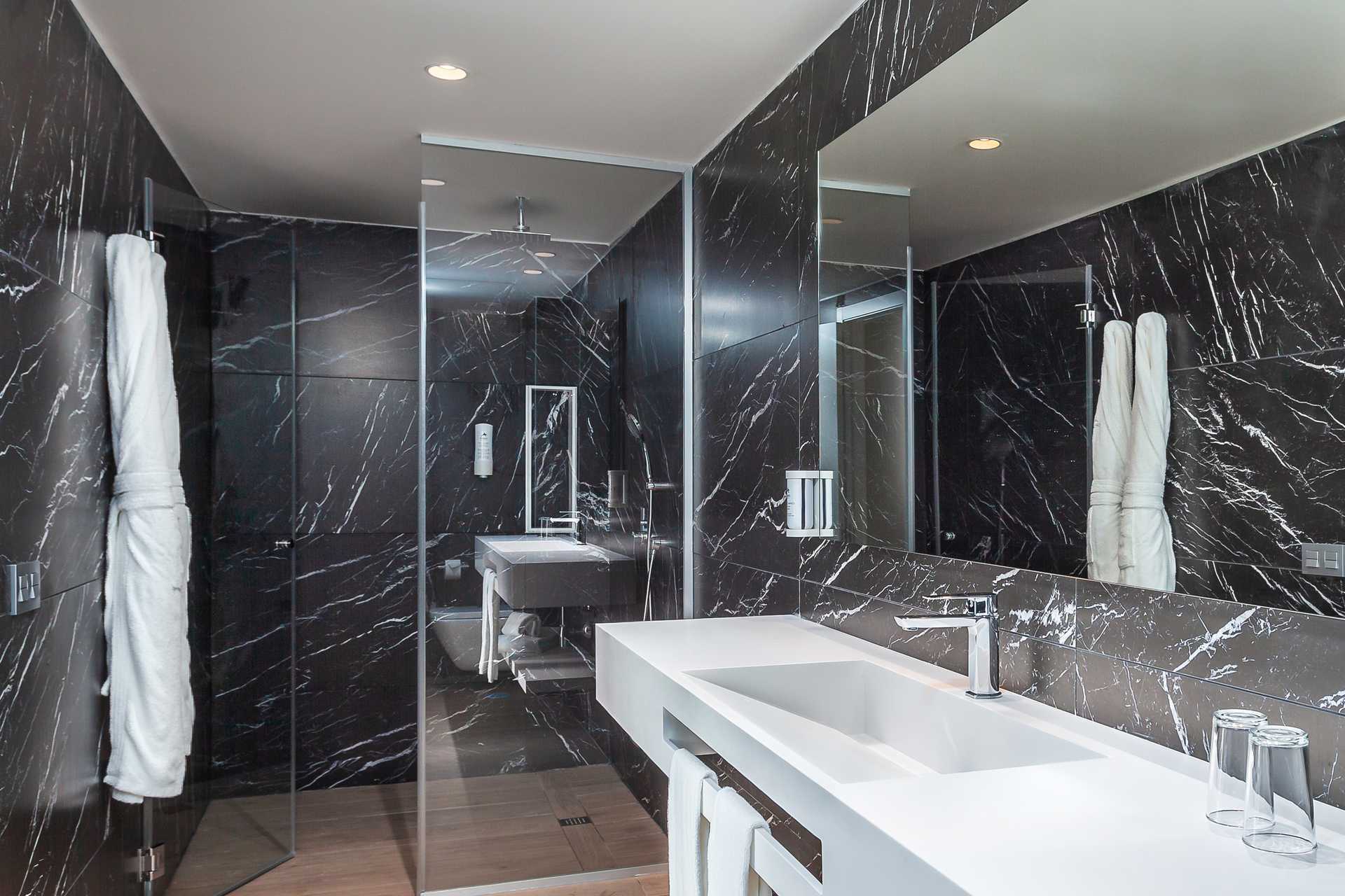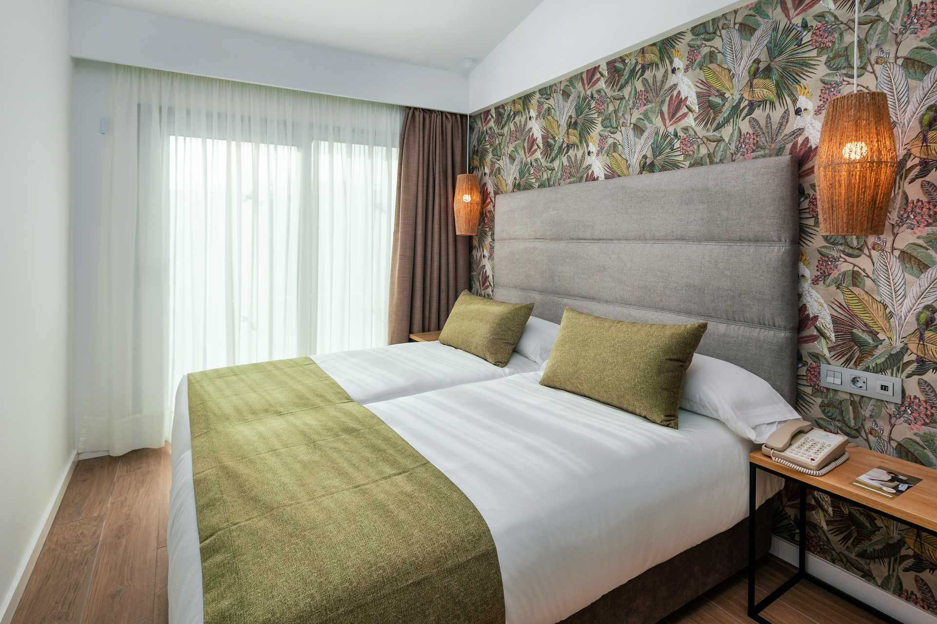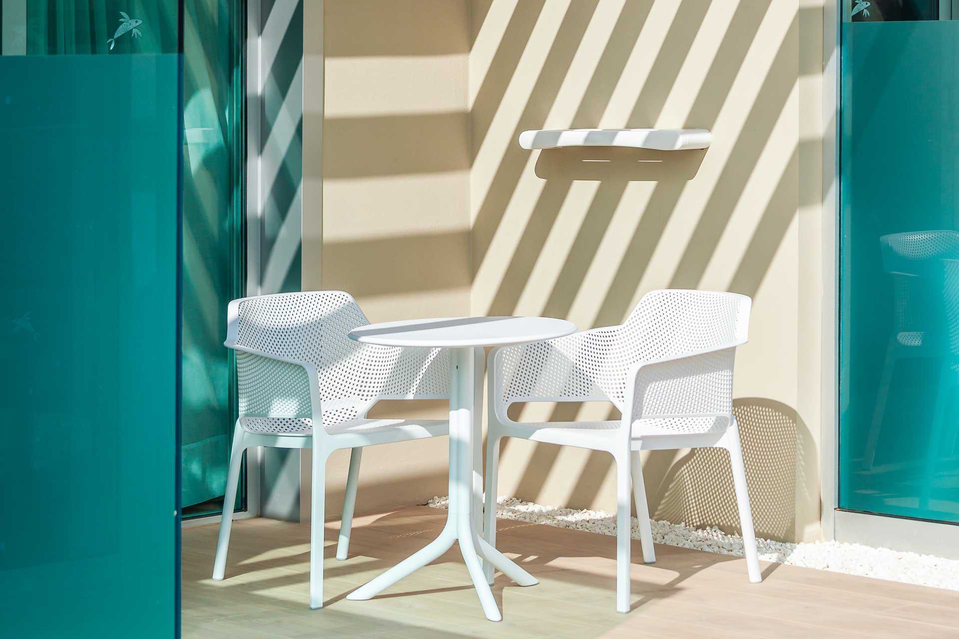 Junior-suiter med terrasse med stole og borde og udsigt til poolen. Dobbeltseng eller to enkeltsenge. Mulighed for en ekstra opredning i sovesofa. Gratis wifi og aircondition. Deponering mod betaling. Minibar mod betaling. Nespresso kaffemaskine. Tv med internationale kanaler. Hårtørrer. Badeværelse med bruser og toilet. Rengøring 7 gange om ugen.